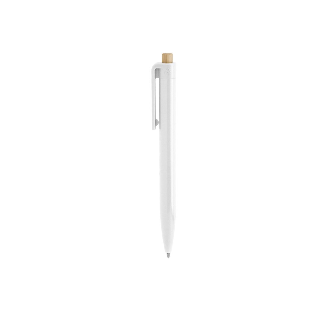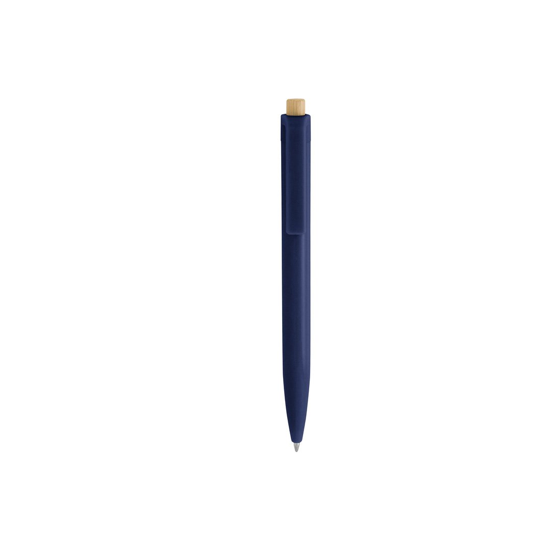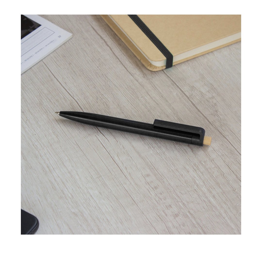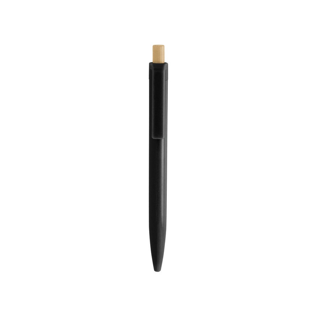 Bolígrafo retráctil. Cuerpo plástico en diferentes colores acabado brillante. Pulsador de bambú.