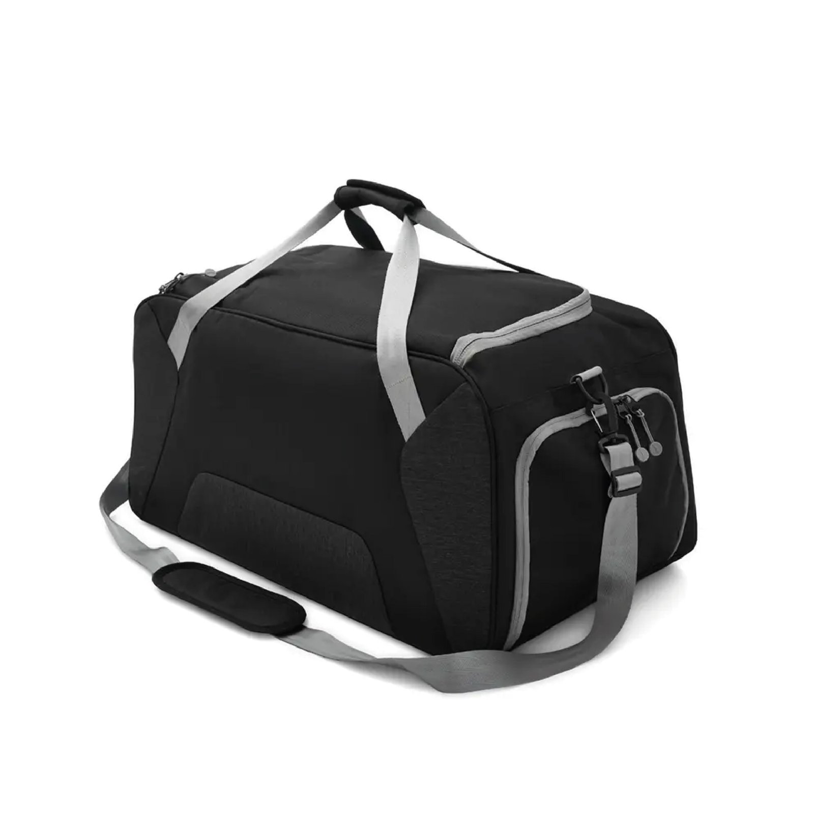 Bolso confeccionado en 168D nylon, ideal para tus actividades deportivas, viajes o giras de Rugby. Cuenta con un compartimiento principal amplio y un bolsillo frontal con cierre para objetos mas pequeños que necesites a mano. Además, tiene dos bolsillos laterales, uno de ellos con cierre, diseñado para guardar el calzado sin ensuciar le resto de tus pertenencias, y el otro, con red. Posee manijas y correa regulable, para llevarlo de la forma que te resulte más cómoda. Capacidad: 65L.