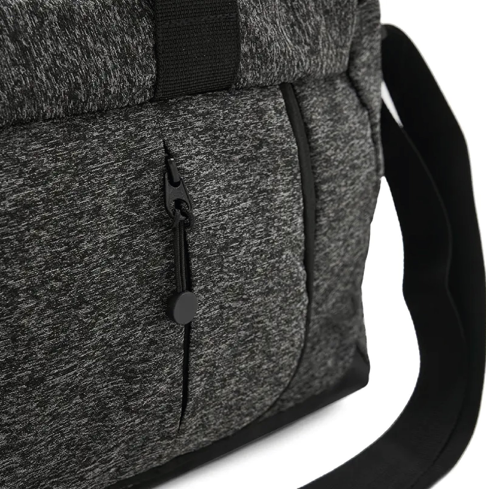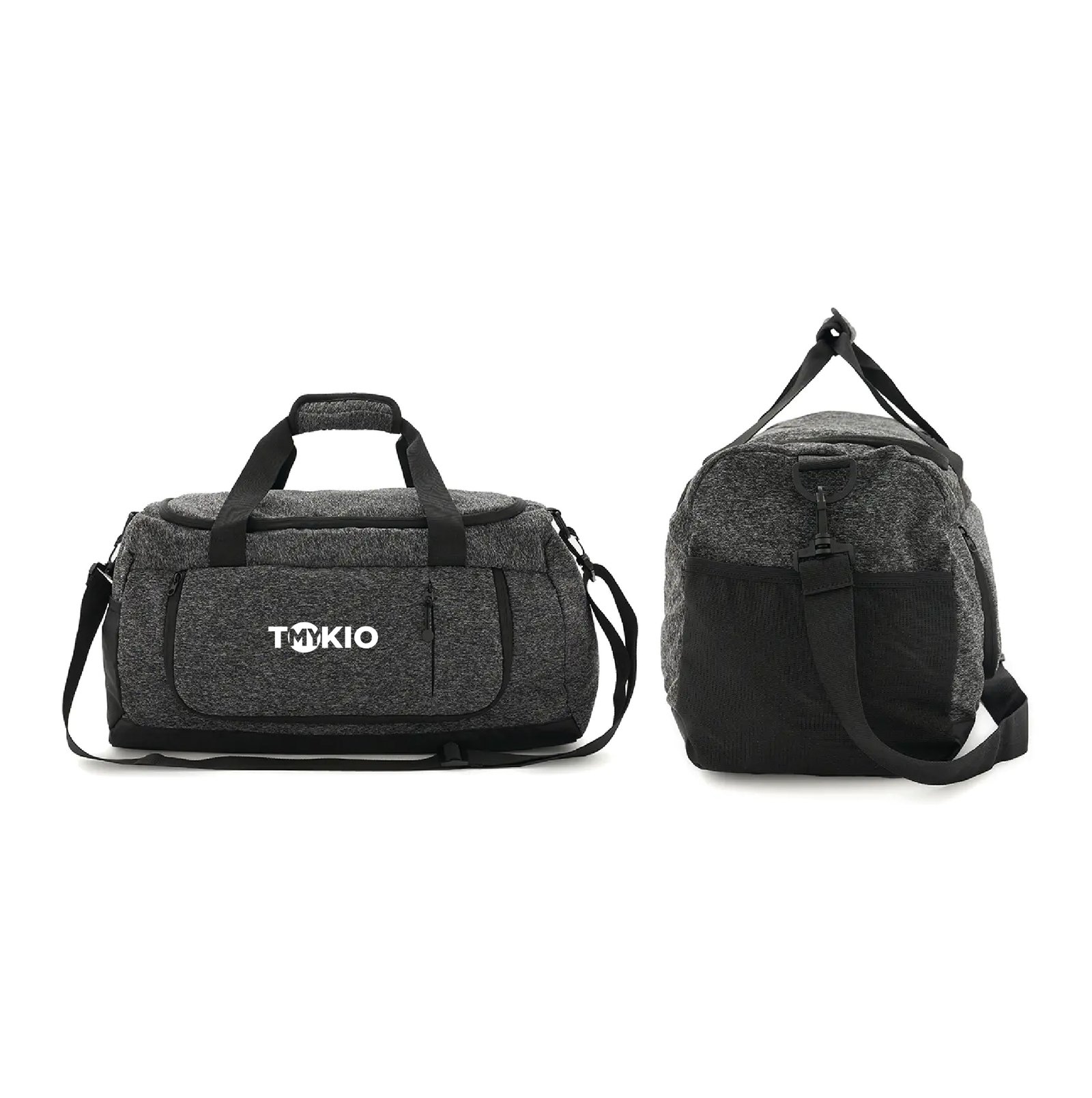 Bolso fabricado en tela de polyester, tiene 3 cierres principales, un compartimento exterior de red y espacios pequeños en el interior. Bolsillo frontal con bolsa para zapatillas o ropa sucia. Dimensiones: 49 x 24 x 22,5 cm. Capacidad: 26L.