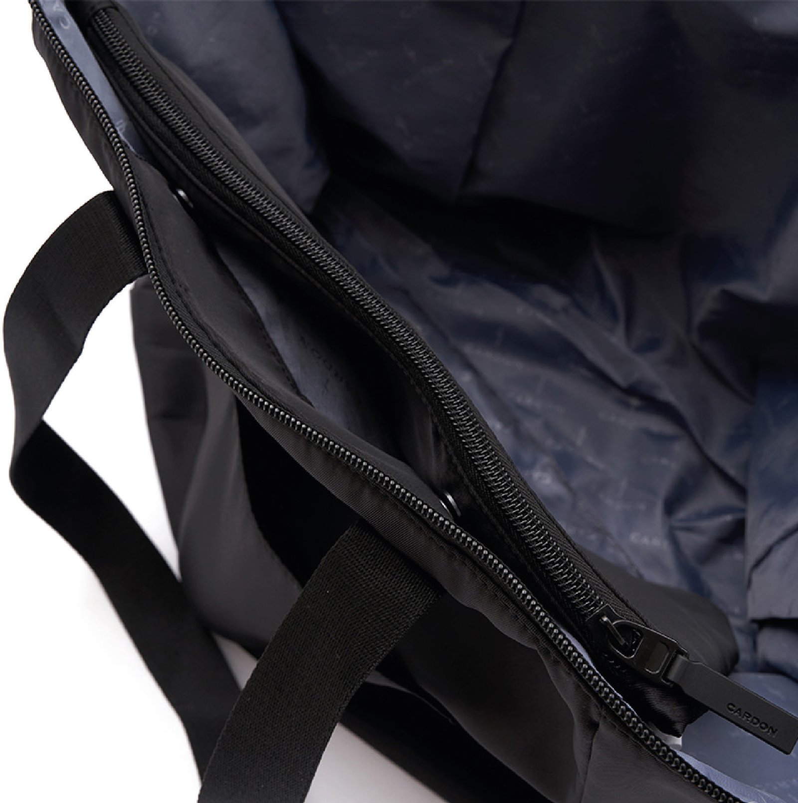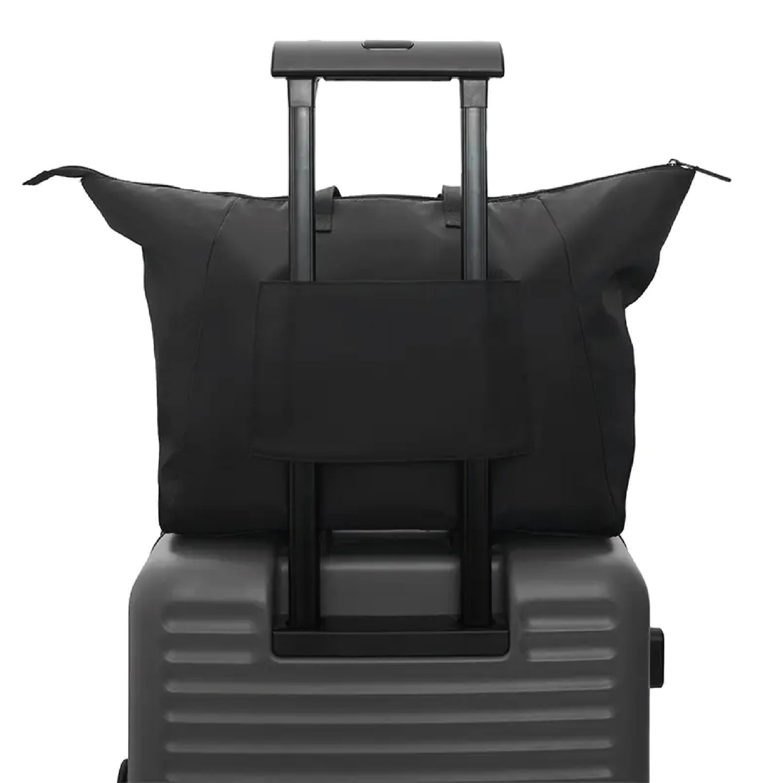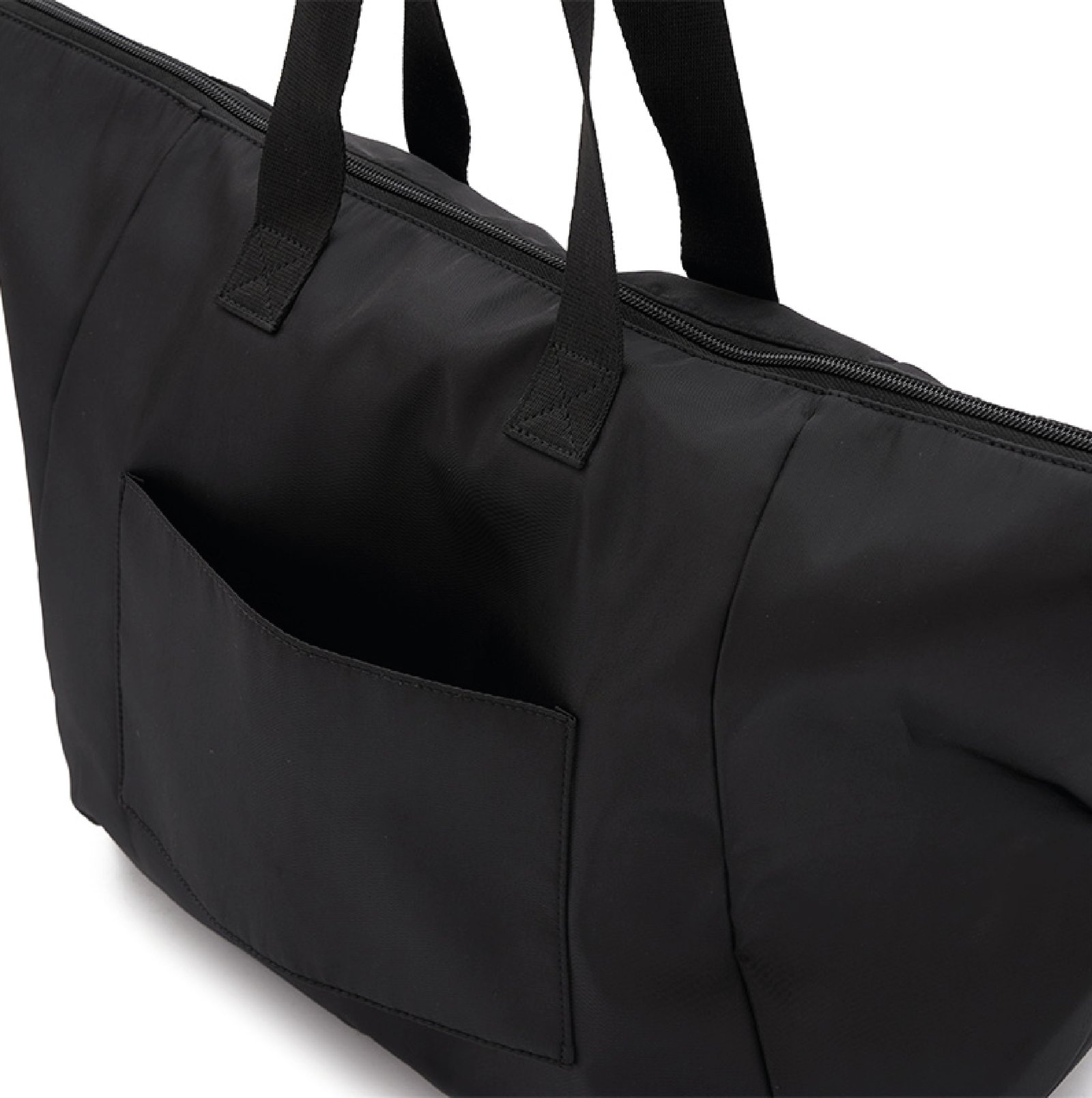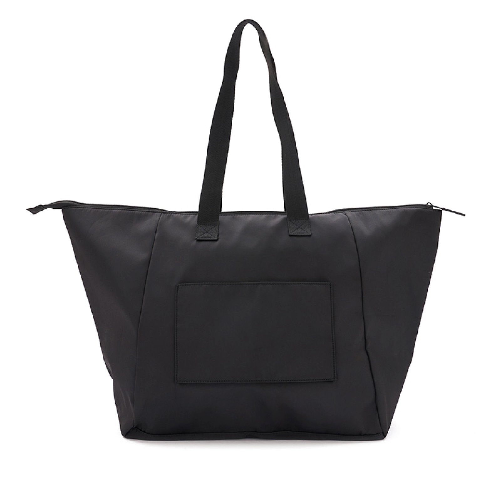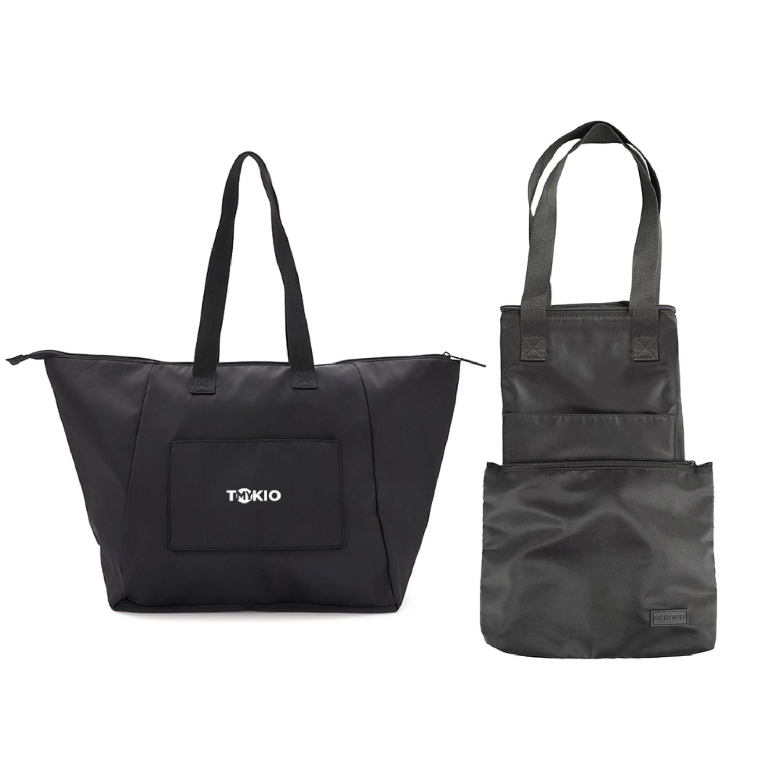 Bolso tote confeccionado en Nylon Jacquard con cierre en tono y cabezal negro. Compartimiento principal de gran apertura con cierre. Cuenta con un bolsillo trasero sin cierre. Incluye un neceser, confeccionado también en jacquard nylon, con cierres en tono. Correas para hombros confeccionadas en Polyester y Goma. Ideal para viajes y madres. Dimensiones: 36 x 58 x 22 cm (Alto x Longitud x Ancho). Capacidad: 5L.