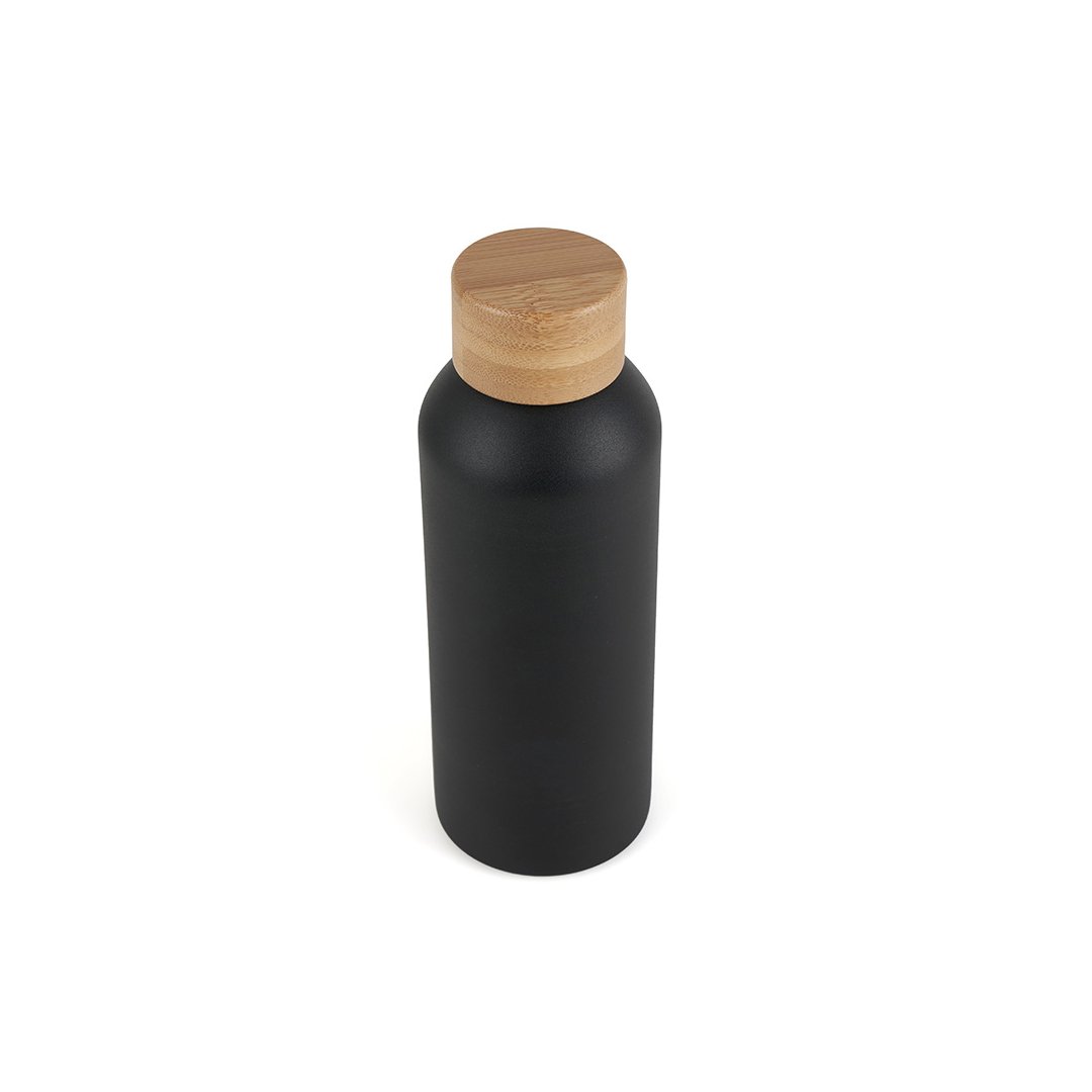 Botella de 500 ml confeccionada en doble pared de acero inoxidable con tapa a rosca de bambú. Mantiene las bebidas frías por 24 horas y calientes durante 12 horas. Con impacto positivo en el medio ambiente, esta botella reutilizable te ayuda a reducir el consumo de plástico de un solo uso. Producto libre de BPA, aprobado por el I.N.A.L. para el contacto con alimentos. Medidas: 22 x 7,2cm (Altura x Diámetro).