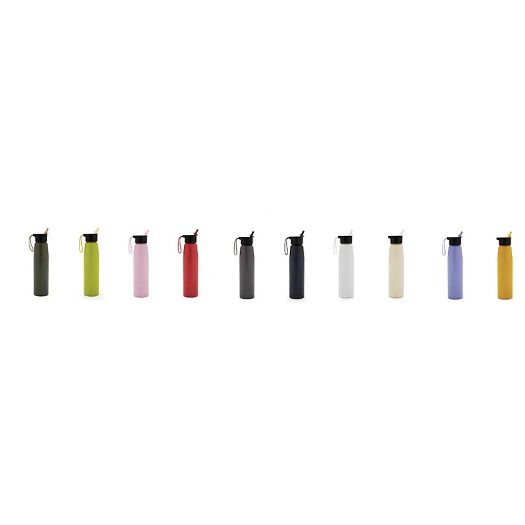 Botella de aluminio con tapa de PP negra a rosca con pico de PS y sorbete PE. Cuenta con una correa de silicona a tono con el color elegido para facilitar el agarre. Capacidad de 700 ml. Ideal para tus actividades deportivas y al aire libre. Con impacto positivo en el medio ambiente, esta botella reutilizable te ayuda a reducir el consumo de plástico de un solo uso. Producto libre de BPA.