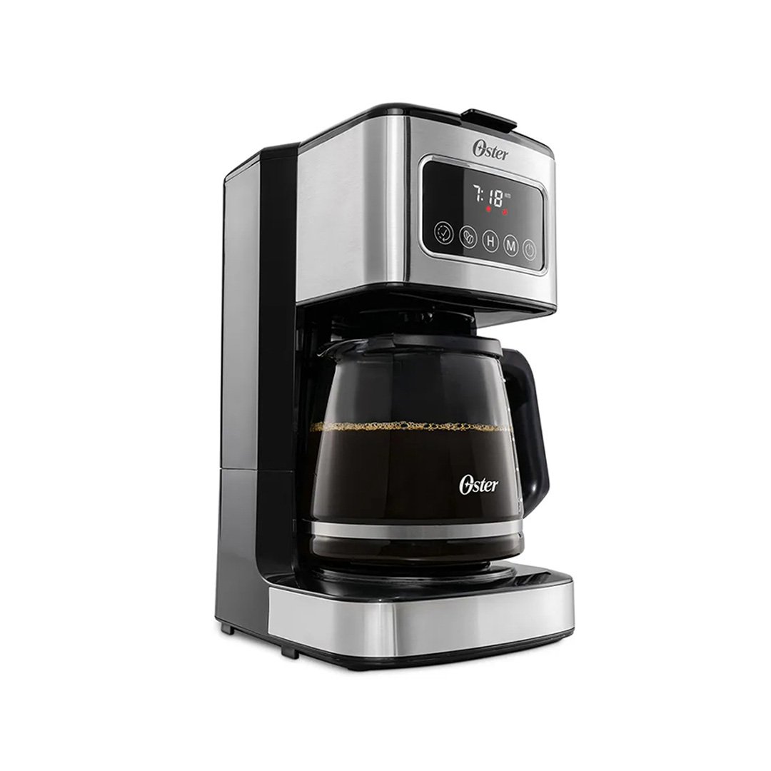 Cafetera programable de 12 tazas con pantalla táctil. Óptima funcionalidad para elegir la hora de preparación y el tipo de café, gracias a sus funciones programables.