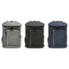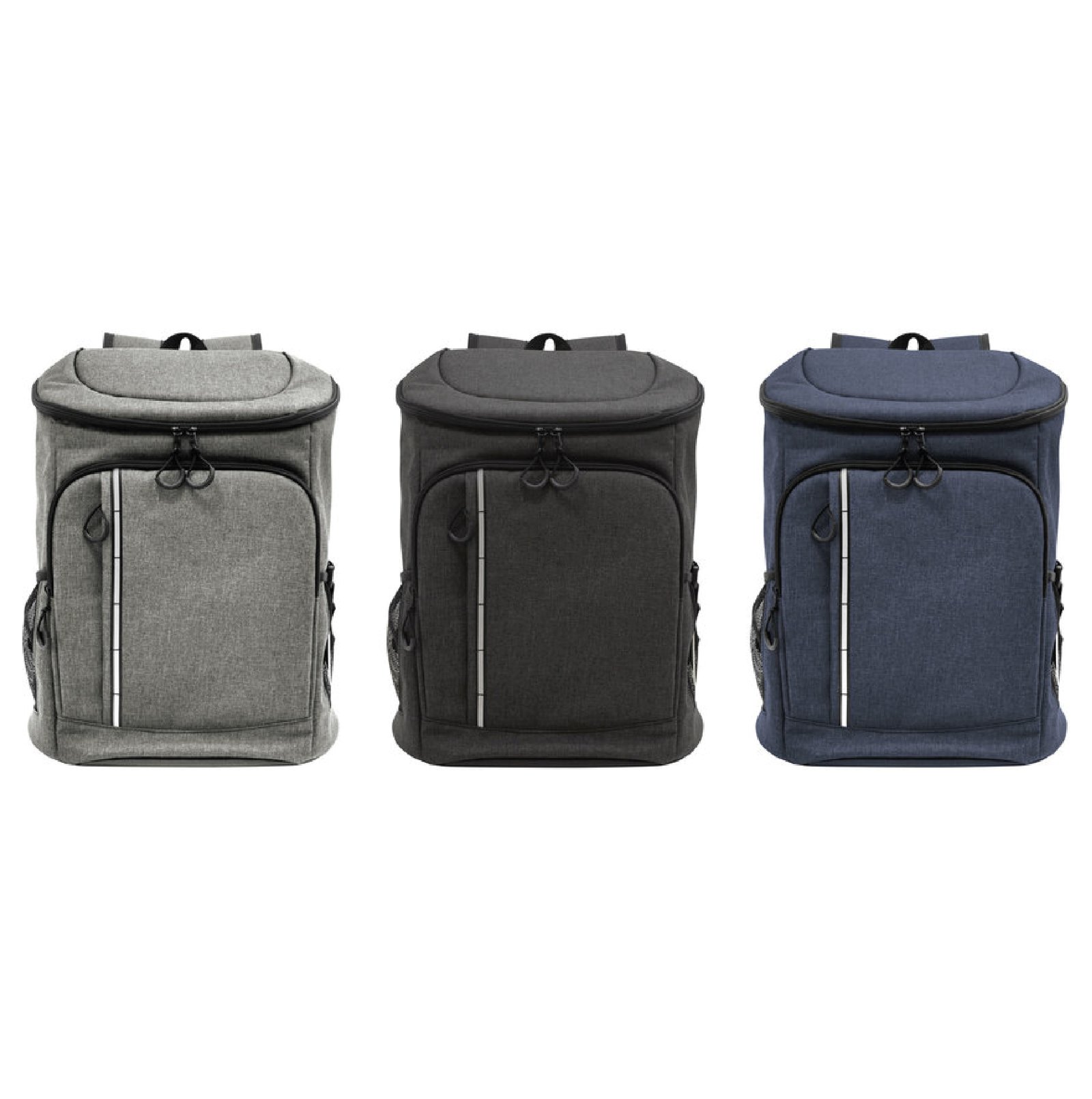 29 x 43 x 18 cm. Capacidad 18 litros aprox. Poliéster Wulong 300D + Interior forrado en PEVA color plata con relleno de espuma de PE. Mochila cooler. Compartimento principal con cierre en la parte superior. Compartimento frontal con cierre, bolsillo interno de red con cierre y bolsillo externo vertical con cierre y banda reflectante. Dos bolsillos laterales de red multipropósito. Incluye abridor de botellas de acero inoxidable (6,3 x 3,3 cm) extraíble. Correas regulables acolchadas. Cierres metálicos. Tiradores de cierre plásticos en forma de U de color negro.
