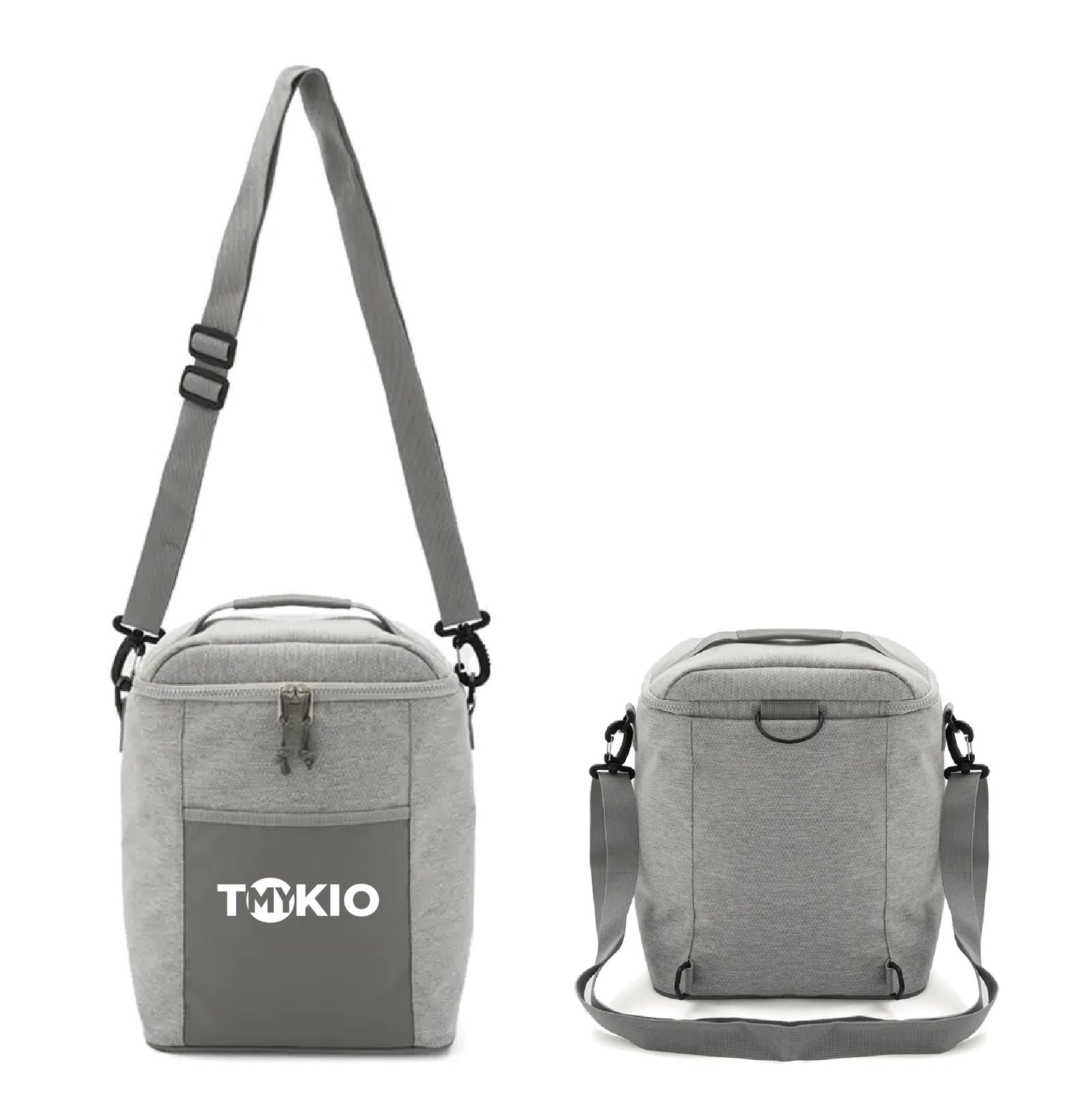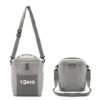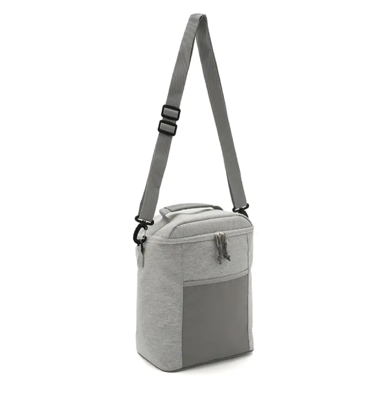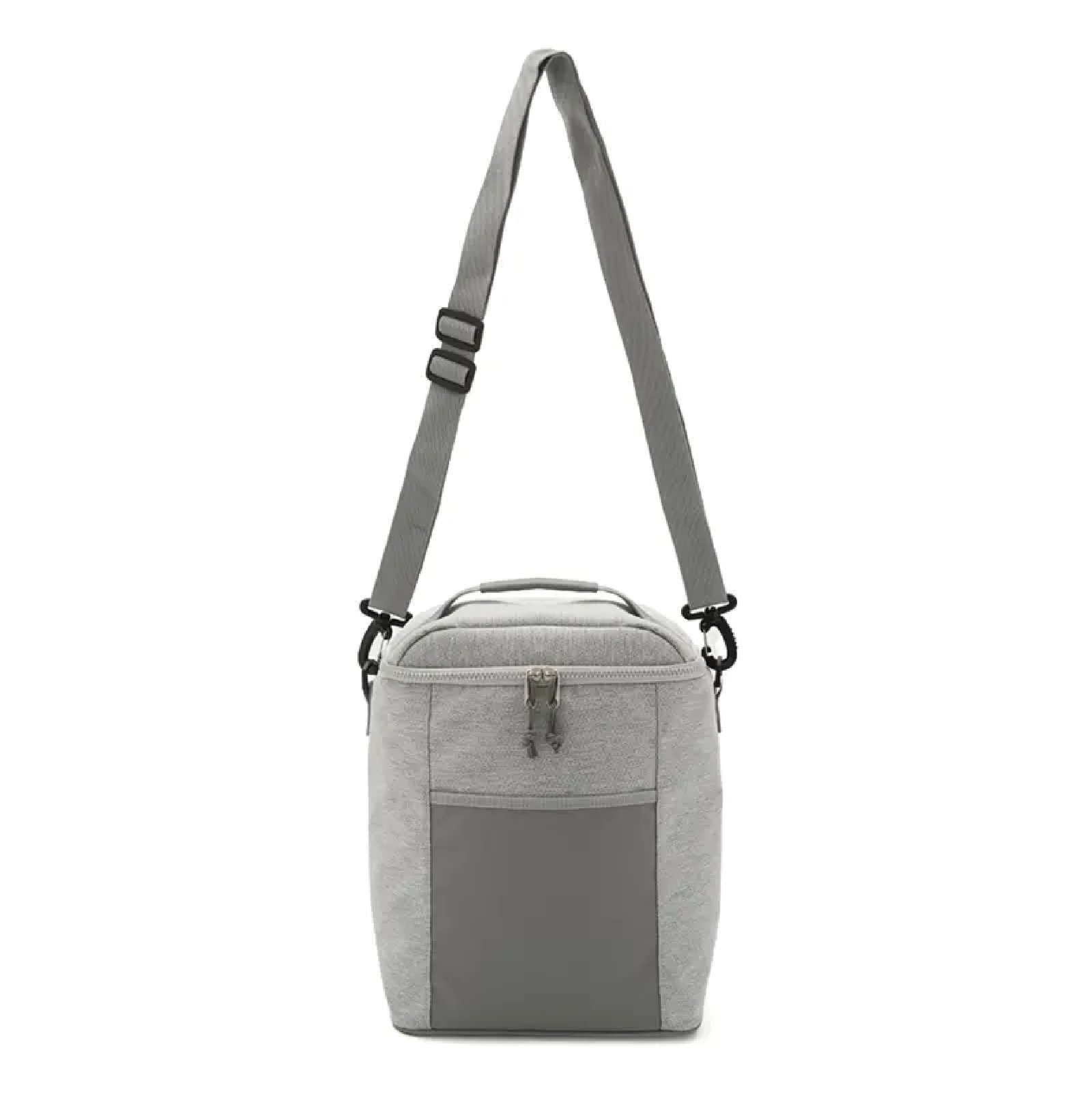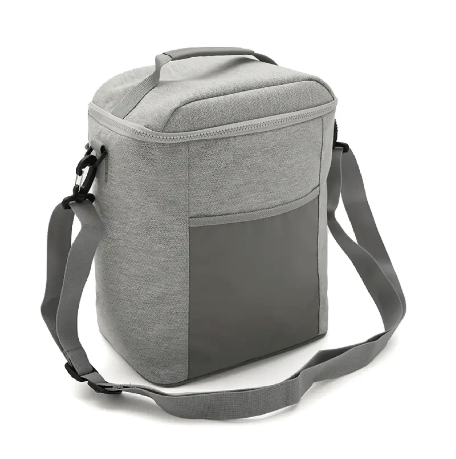 Cooler rectangular con bolsillo frontal y correa lateral. Confeccionado en poliéster, con interior de PEVA + PE. Cuenta con compartimiento principal con cierre, correa ajustable y manija superior. Es ideal para transportar alimentos y bebidas en salidas o uso diario.