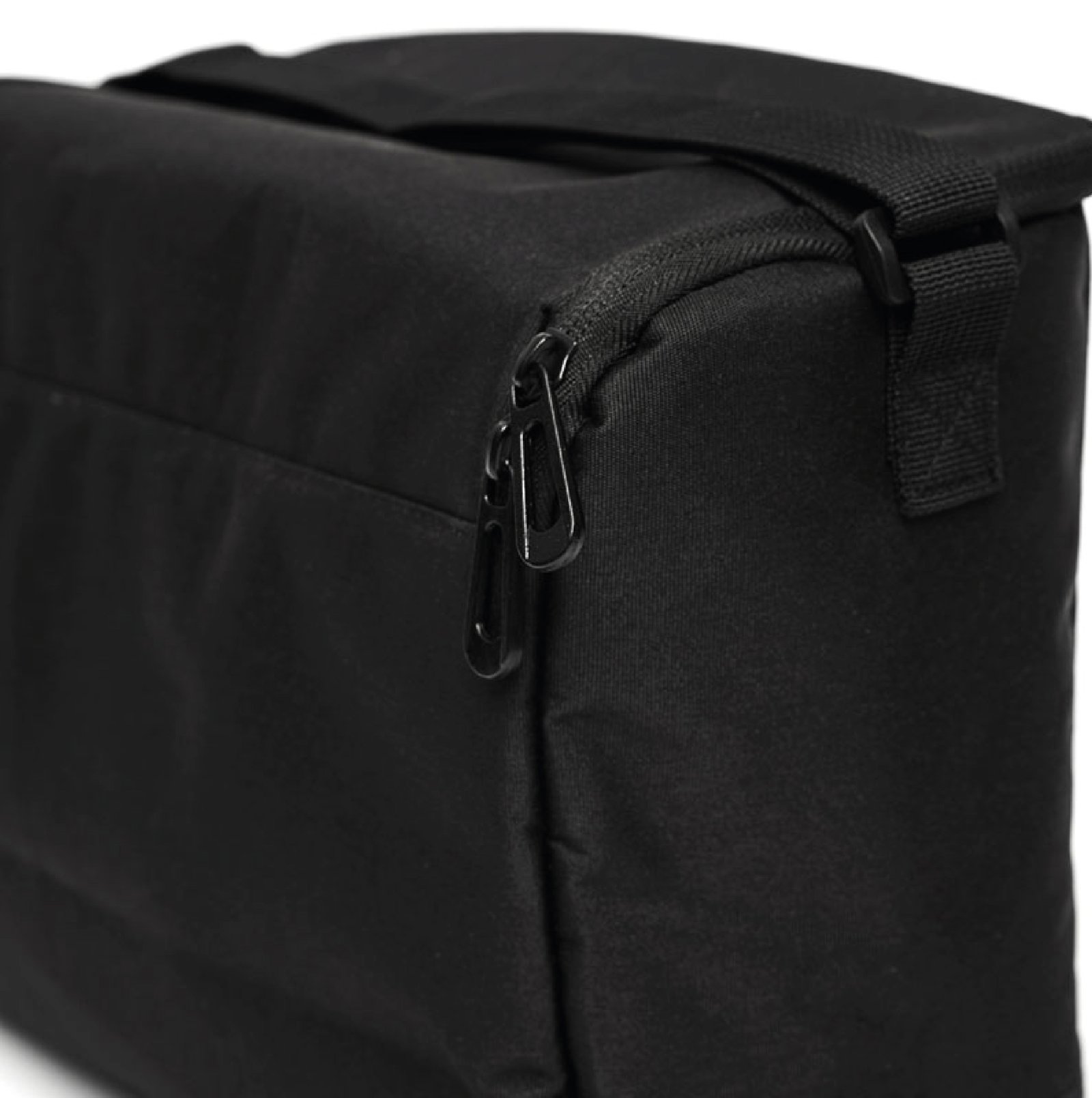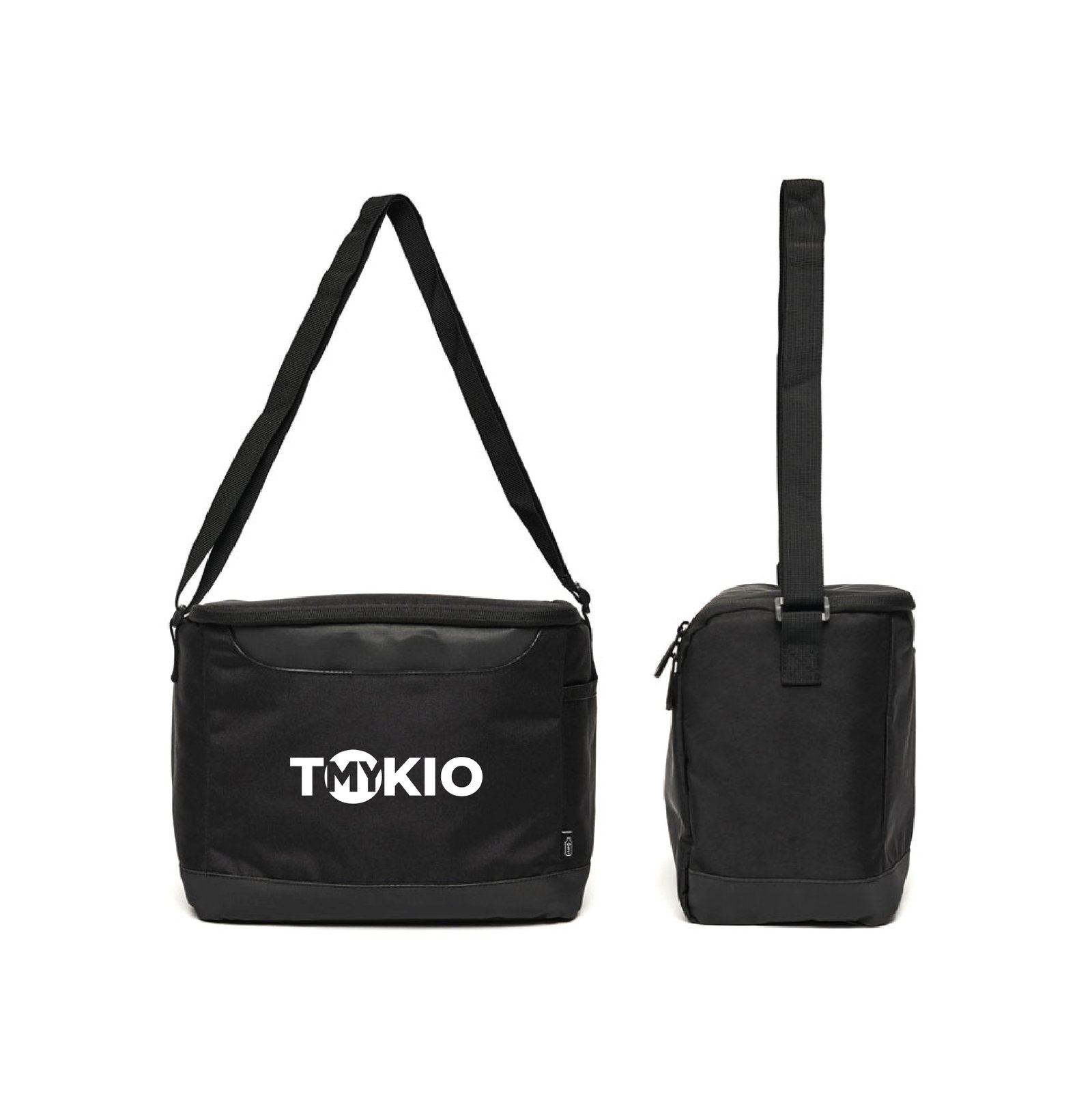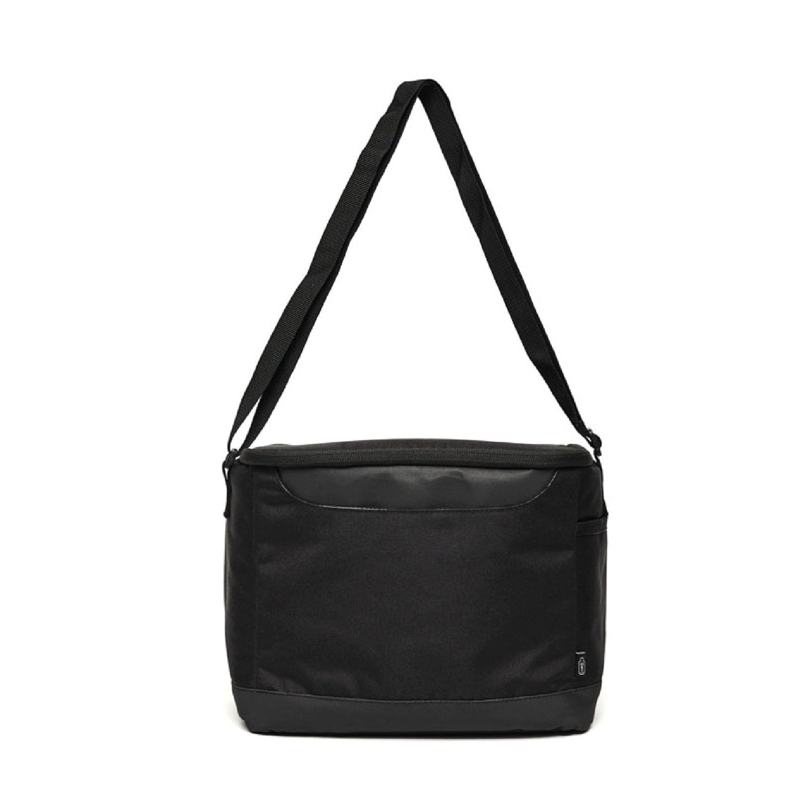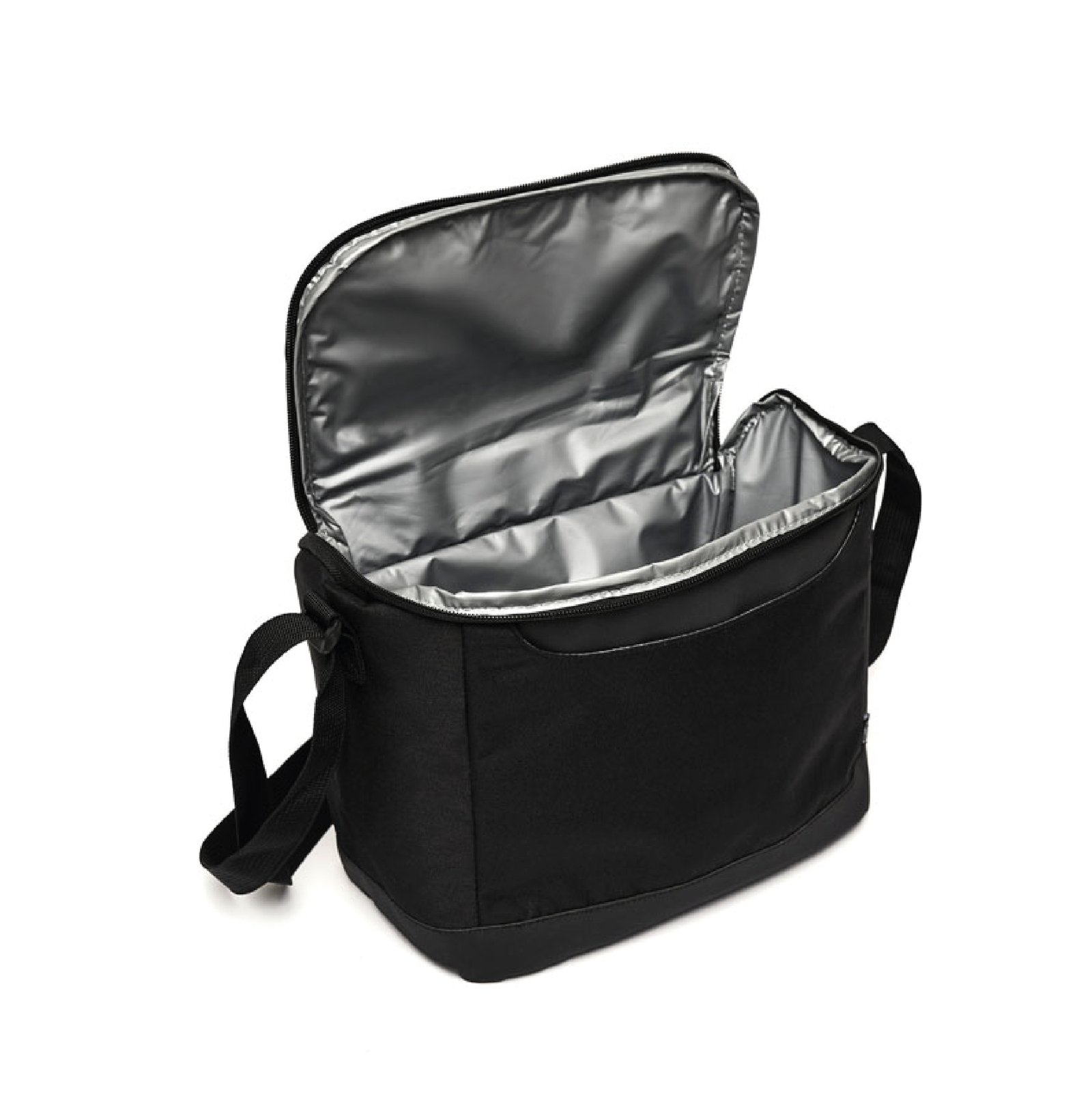 Cooler confeccionado en poliuretano, poliéster con revestimiento de PVC, espuma de polietileno 3mm utilizada como aislante y PEVA Lining, un revestimiento de polietileno vinil acetato, conocido por ser impermeable y usado en recubrimientos. | Cuenta con interior térmico. | Capacidad: 7 Lts.