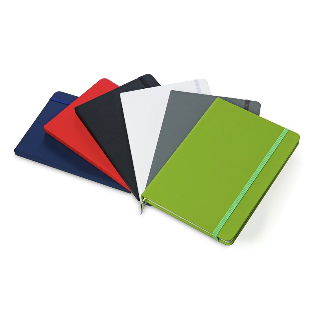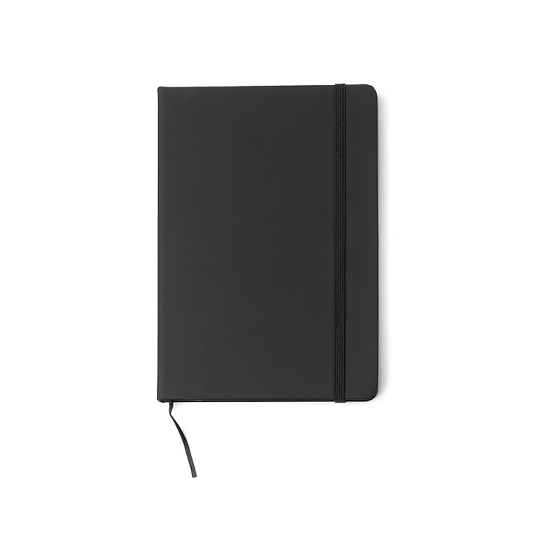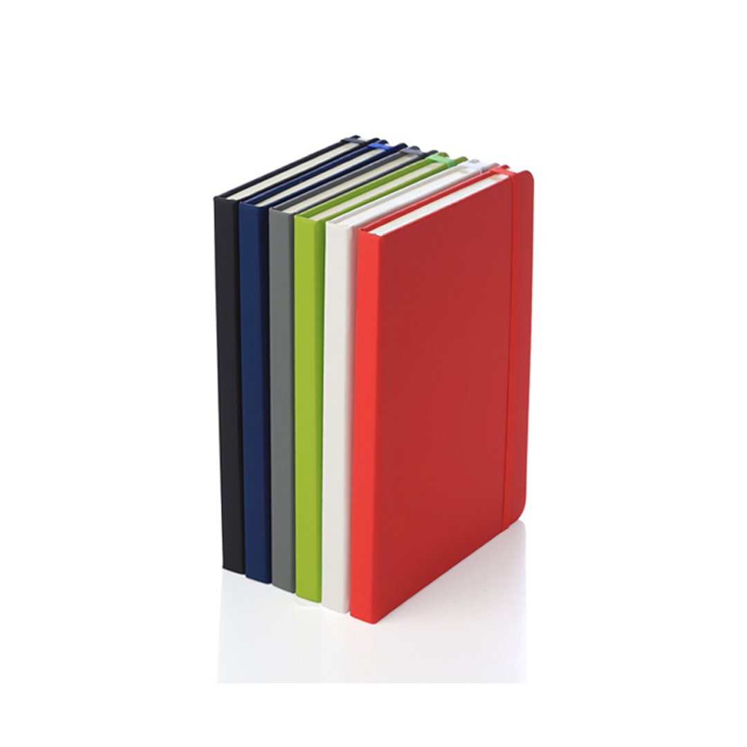 Cuaderno forrado en eco cuero soft mate con banda elástica de sujeción al tono