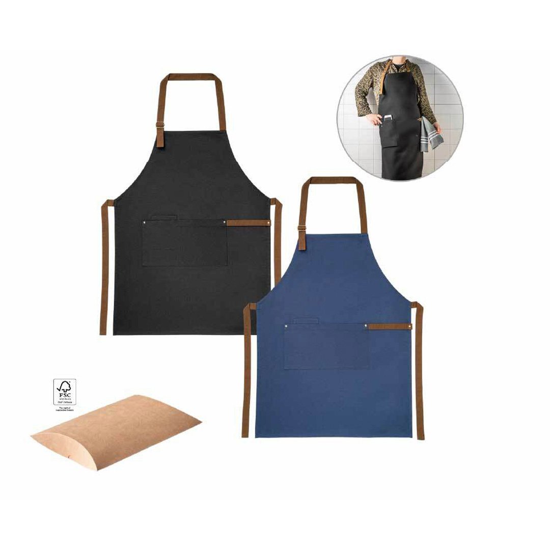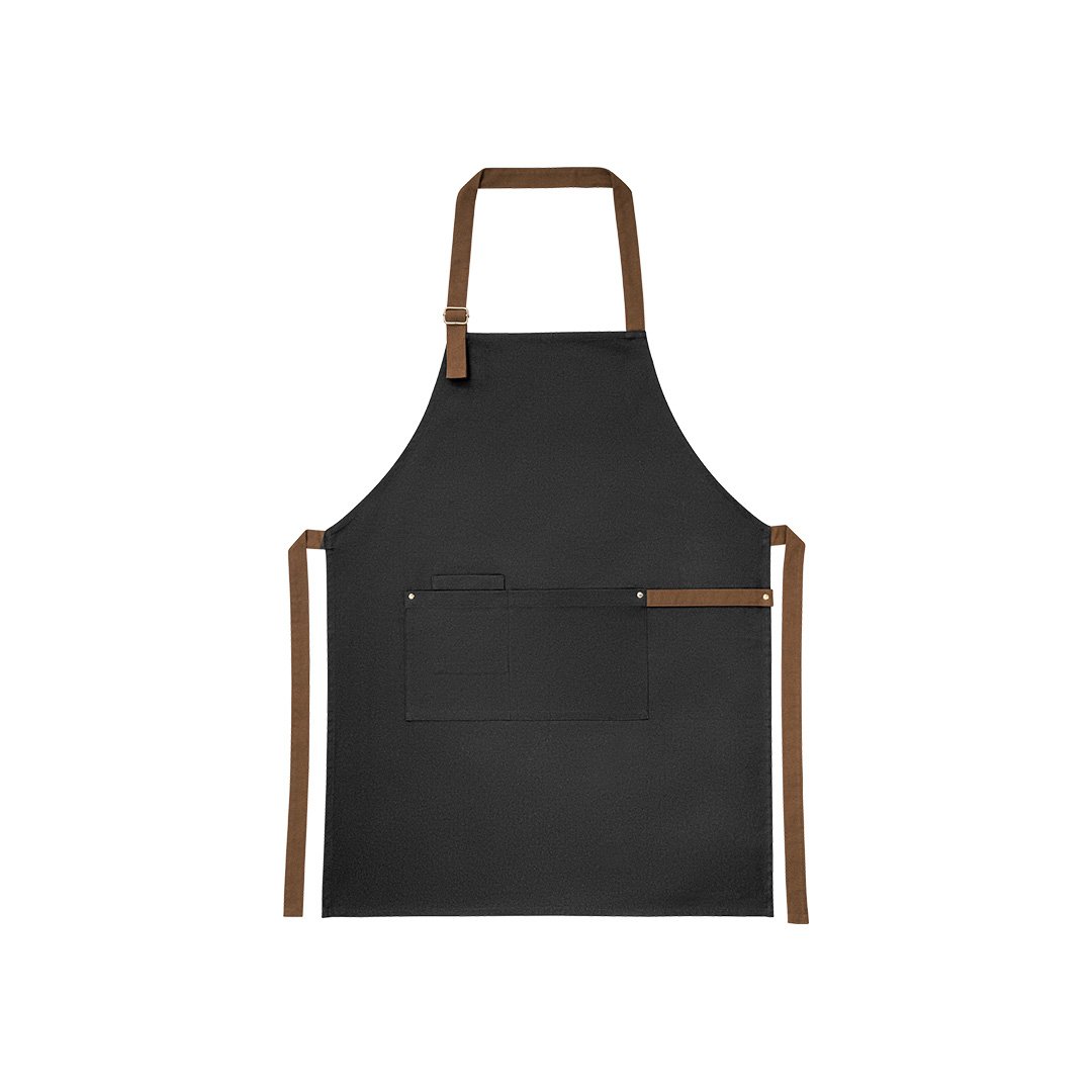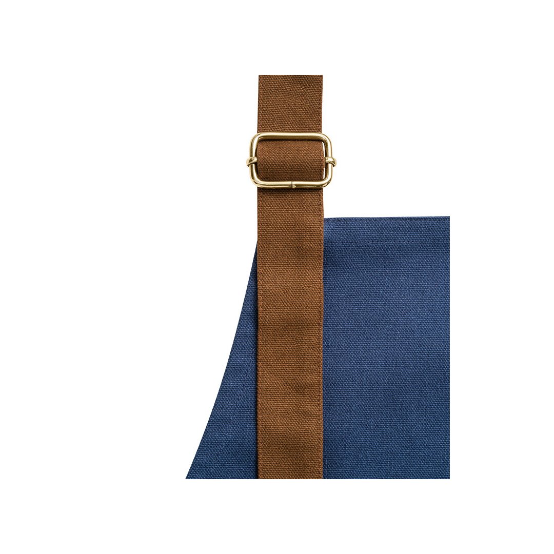 Delantal fabricado en lona 100% algodón (300 g/m²) con detalles metálicos.