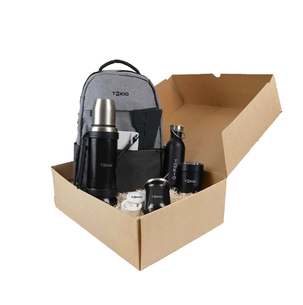 Este kit Incluye una mochila Wagner con compartimento especial para notebook de hasta 15 pulgadas, bolsillos organizadores y tiras acolchadas para mayor comodidad. También cuenta con una botella reutilizable de acero inoxidable ReUseMe de 700 ml, libre de BPA y aprobada por INAL, junto con un cuaderno Tahg de tapa dura de PU con 64 hojas lisas, cierre elástico y cinta marcadora. Para mayor conectividad, incorpora auriculares inalámbricos Kingtech con tecnología Bluetooth 5.0 y estuche de carga. El kit se complementa con un mate Tahg de acero inoxidable bicapa, que mantiene la temperatura sin alterar los sabores, y un jarro térmico Pampero de 360 ml con tapa transparente y cierre hermético. Finalmente, incluye un termo Pampero de 1.1 litros, con doble pared aislante que conserva la temperatura durante 18 horas, tapa multifunción y manija plegable para facilitar su transporte. Todos los productos pueden personalizarse con el logo de tu empresa, convirtiéndolo en una excelente opción para regalos corporativos, kits de bienvenida o eventos especiales