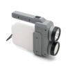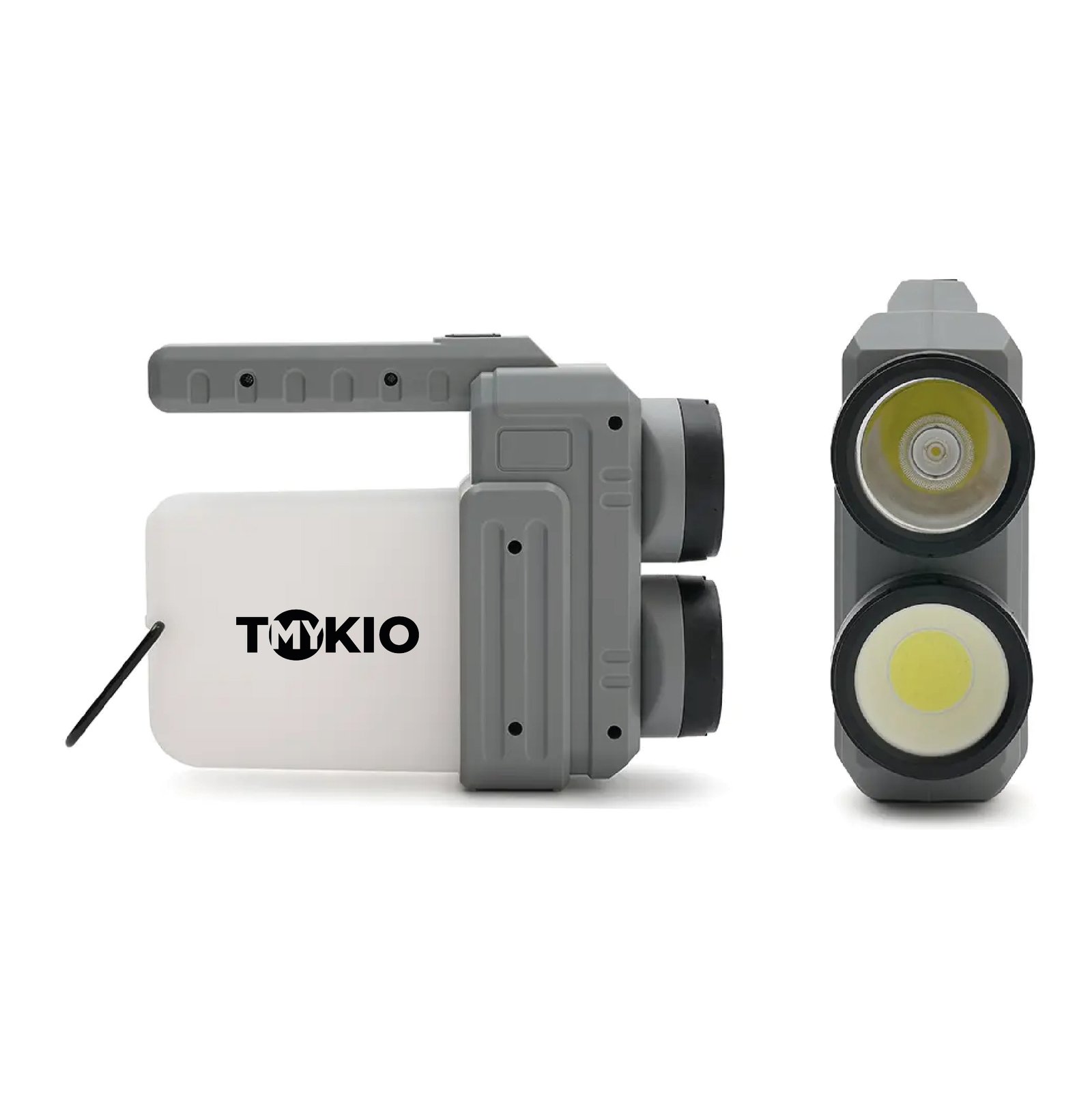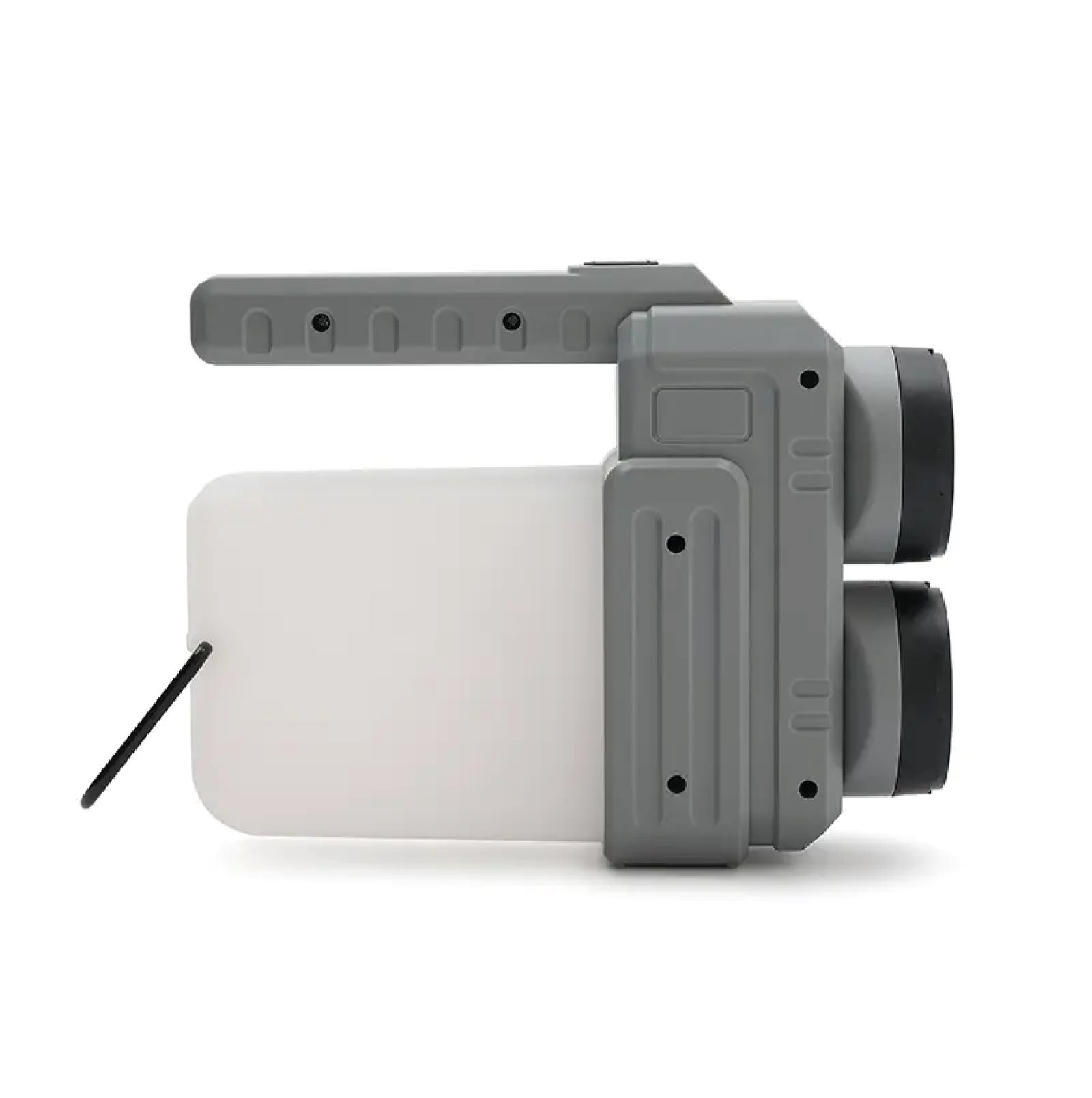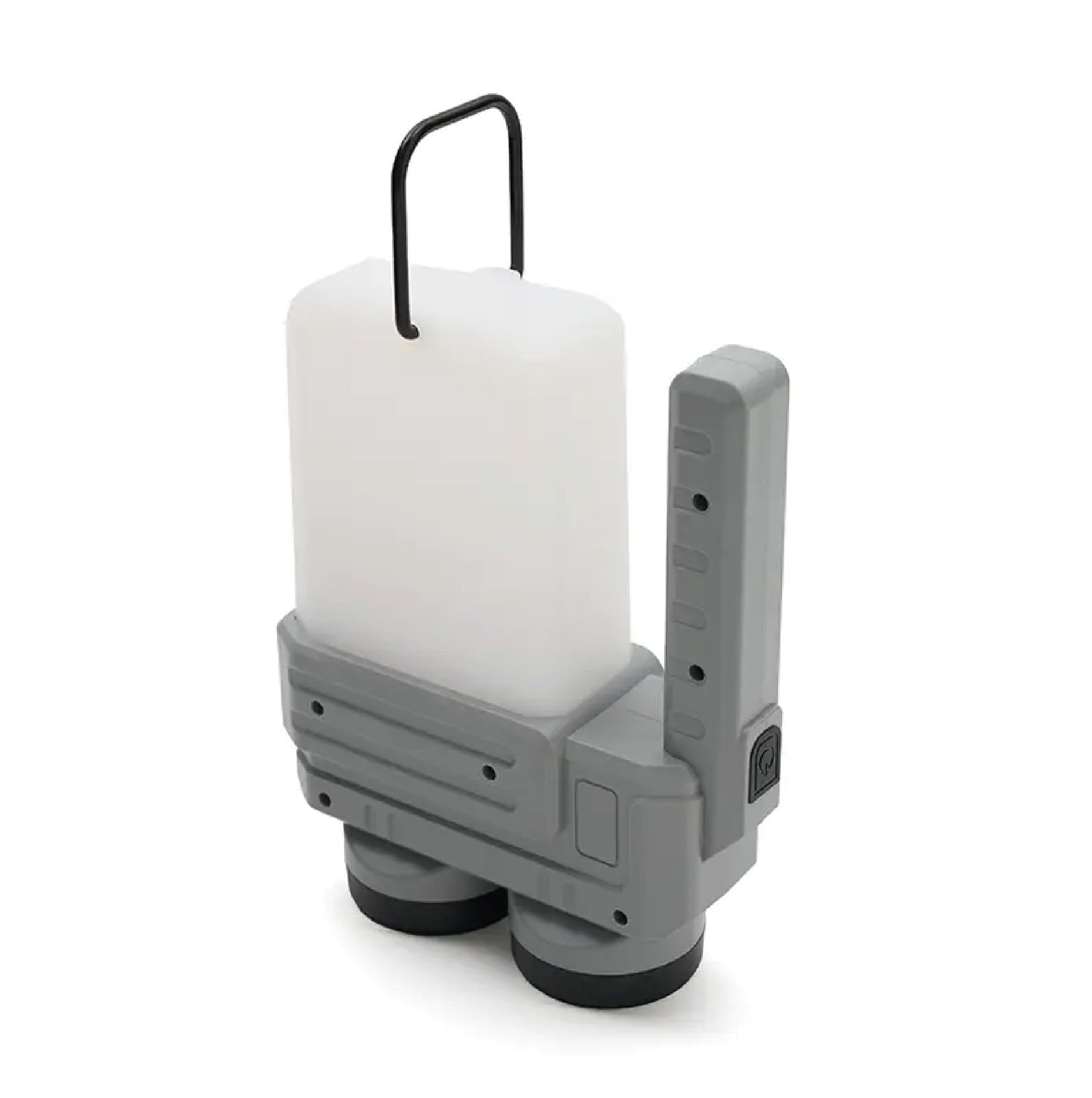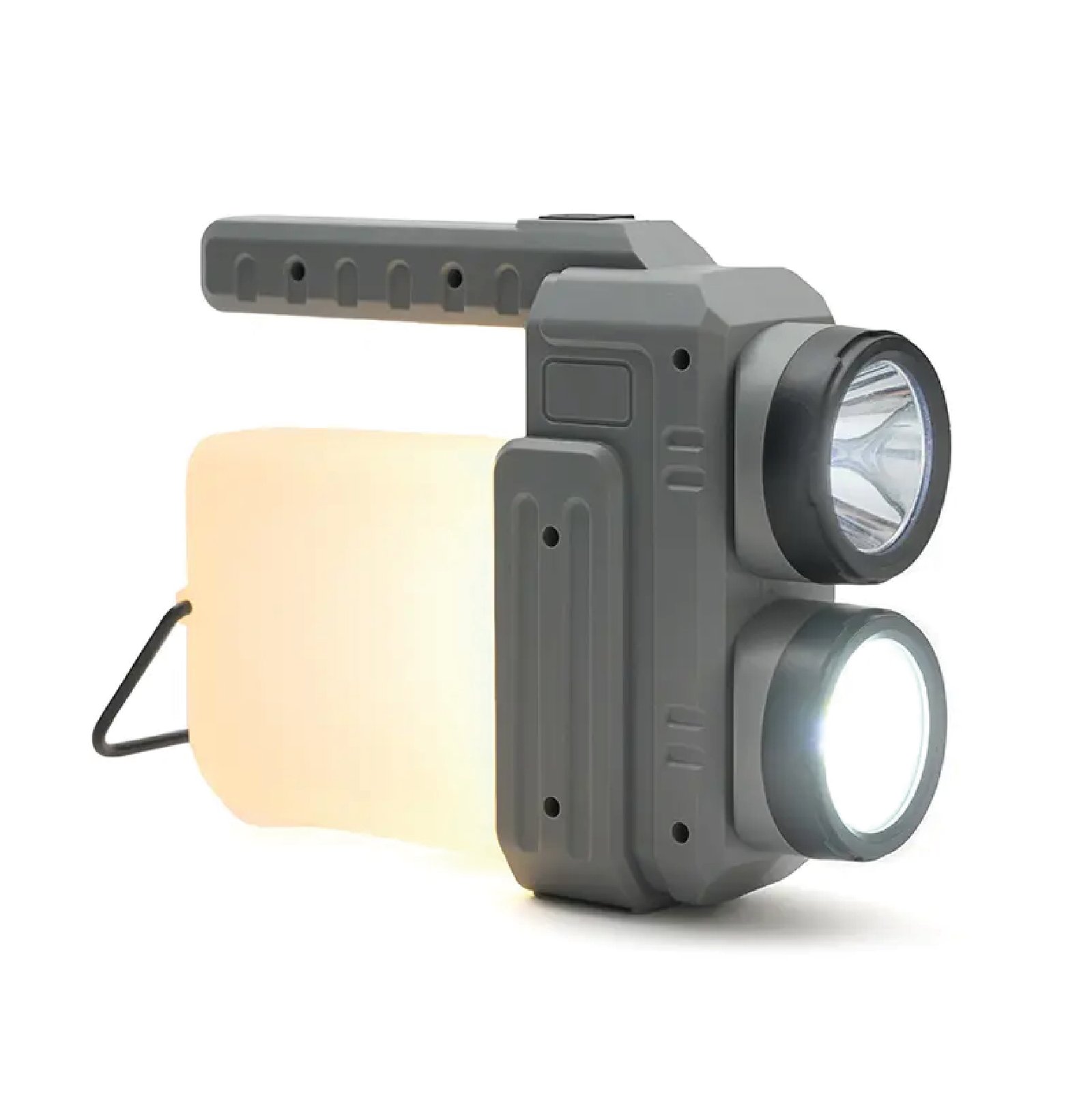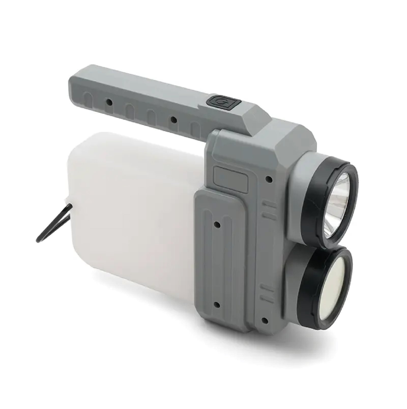 Lámpara fabricada en ABS + PP. Su diseño versátil ofrece dos tipos de agarre: una manija ergonómica para un mejor control en modo linterna y una manija tipo “cuerda”, ideal para colgar y utilizar como farol.