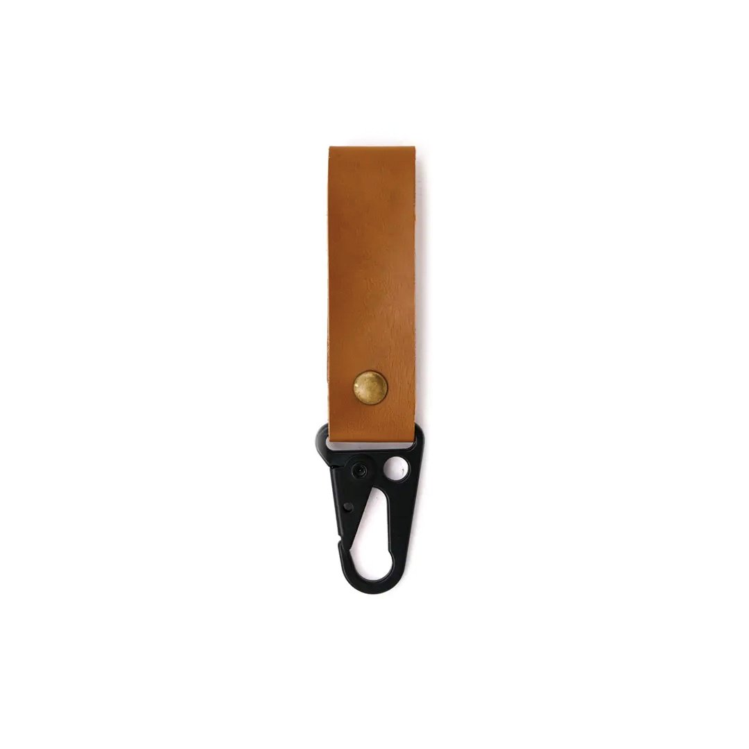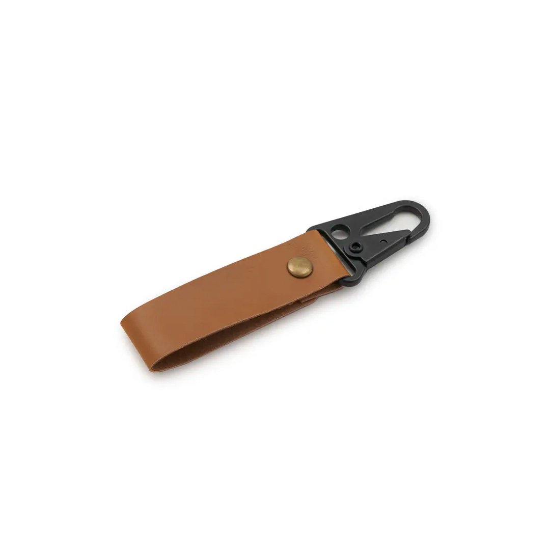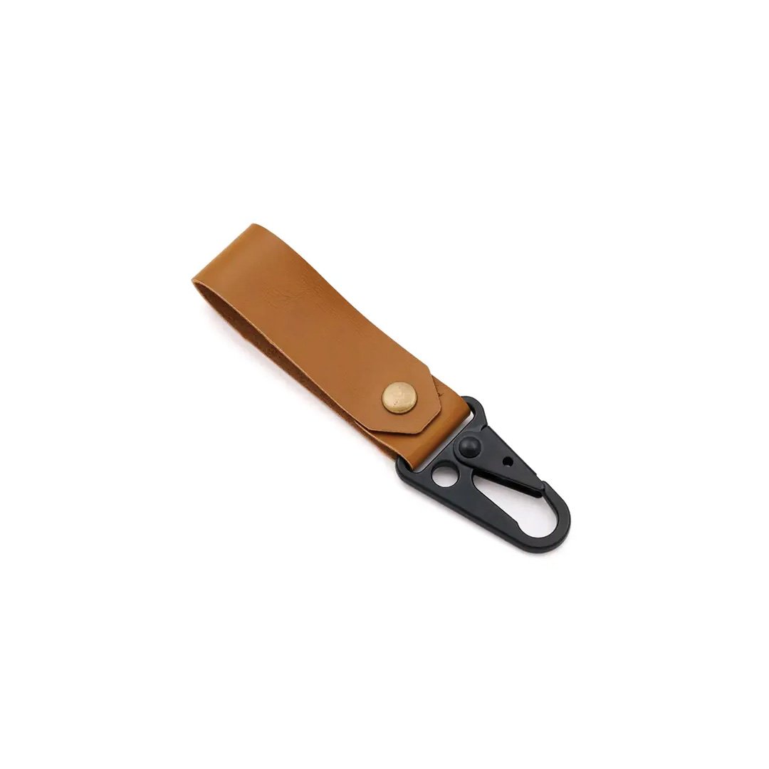 Llavero confeccionado en aluminio y poliuretano (PU), disponible en dos opciones de color: negro con detalles en negro o marrón con detalles dorados.
