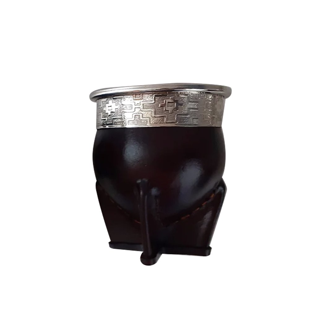 Mate de alpaca con exterior de cuero marrón e interior fabricado en acero inoxidable. El interior está fabricado con acero inoxidable 430 de alta calidad, lo que brinda una experiencia confiable y duradera. La tradicional costura del cuero de tiro bajo agrega autenticidad a este diseño clásico de mate, mientras que la virola de alpaca de 1 mm refleja la calidad del mismo Con una altura de 10 cm y un ancho de boca de 9,5 cm, este mate es perfecto para el uso diario. El cuero utilizado es cuero floater de primera calidad, teñido en curtiembre que garantiza un color natural y duradero