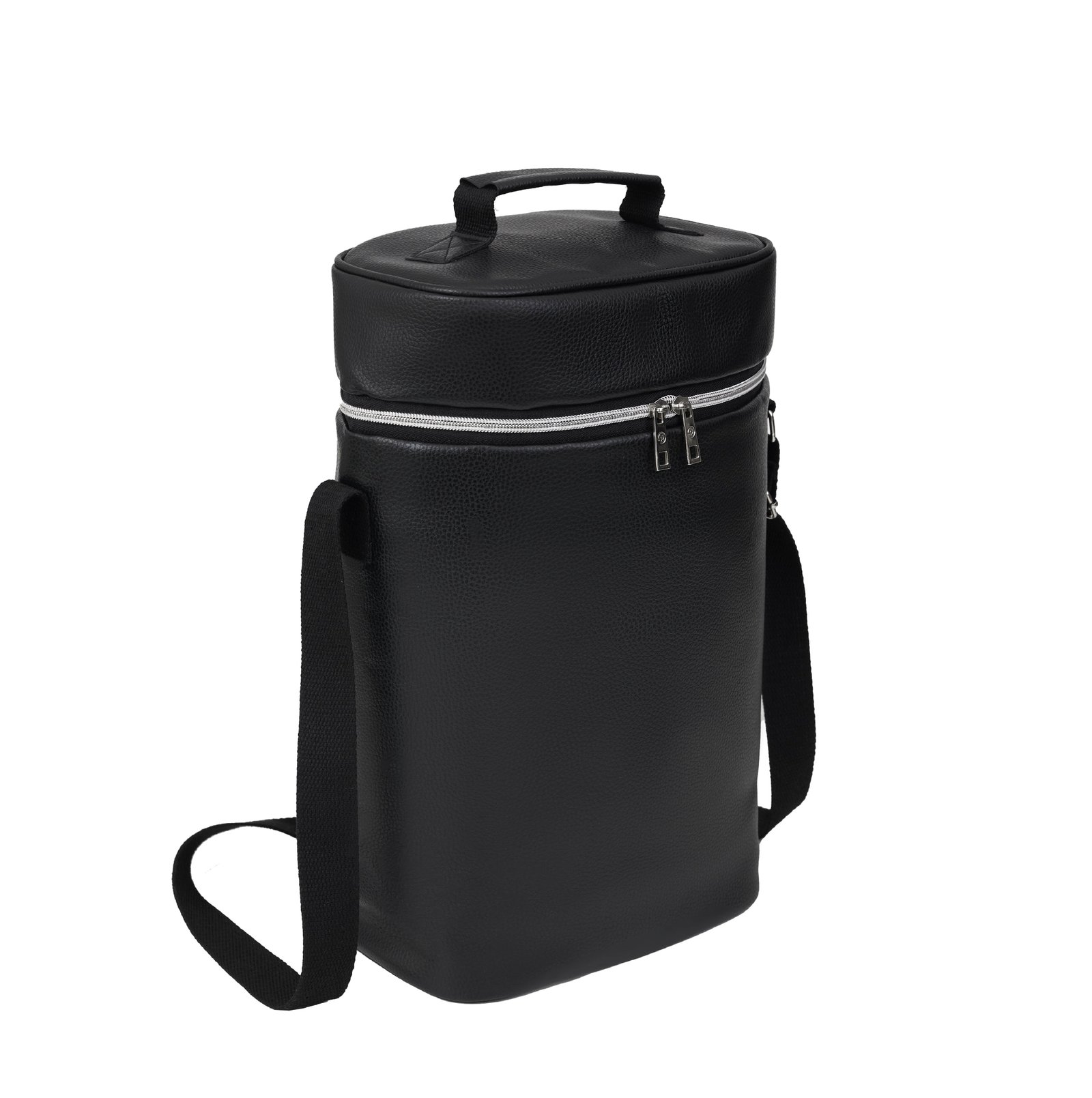 Bolso para equipo de mate Pampero, realizado en PU negro, simil cuero, forrada internamente en negro. Cuenta con correa regulable. La foto es ilustrativa, no incluye termo ni mate. Medidas: 39 x 23 x 14 cm. Capacidad: 12lts. Pampero.