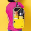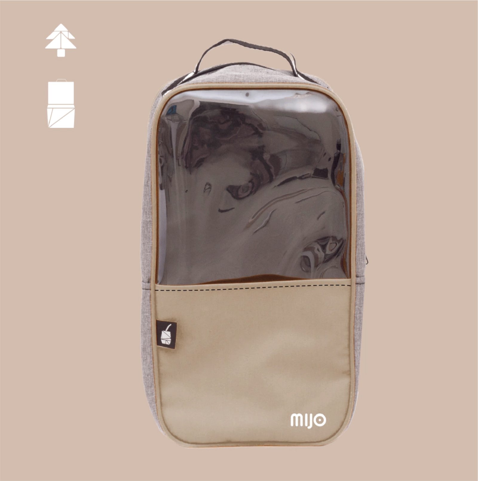 Bolso de tela plástica, super liviano , con 1 correa para llevar al hombro y manija superior.