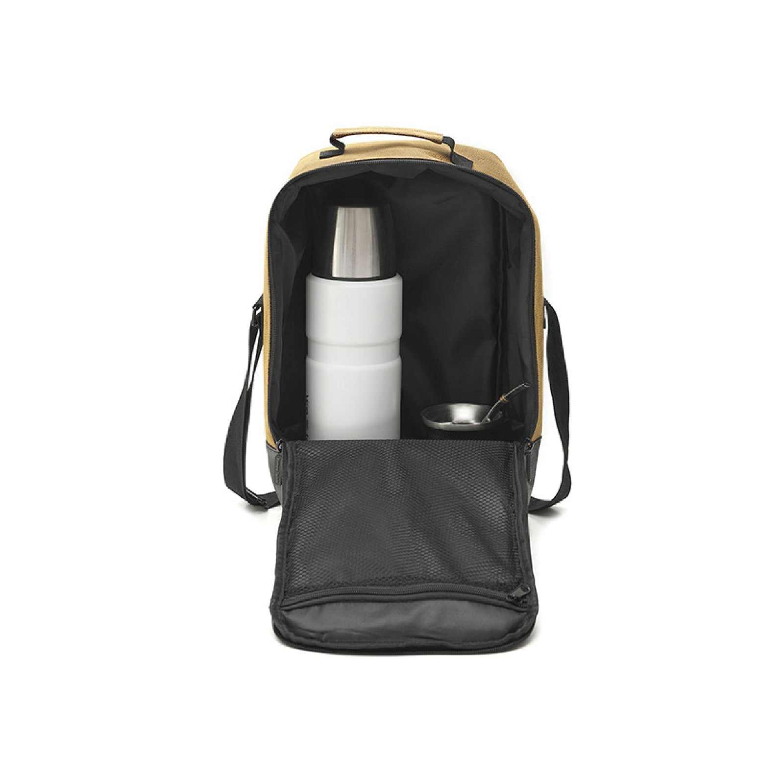 Bolso para equipo de mate Pampa Spirit con compartimiento principal acolchado y bolsillo de red interno. Base impermeable reforzada. Handgrip acolchado y correa regulable antideslizante. La foto es ilustrativa, no incluye termo ni mate. Medida: 21 x 39 x 10 cm. Capacidad: 10 Lts. | Pampa Spirit