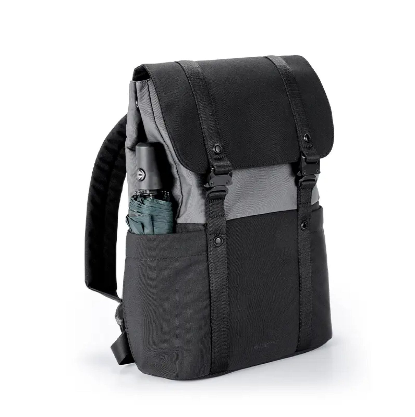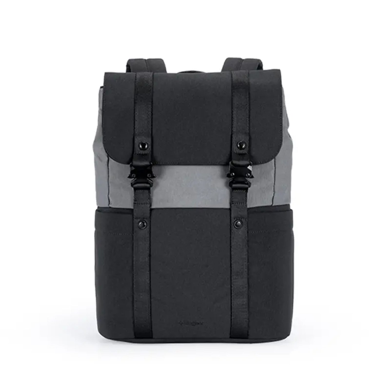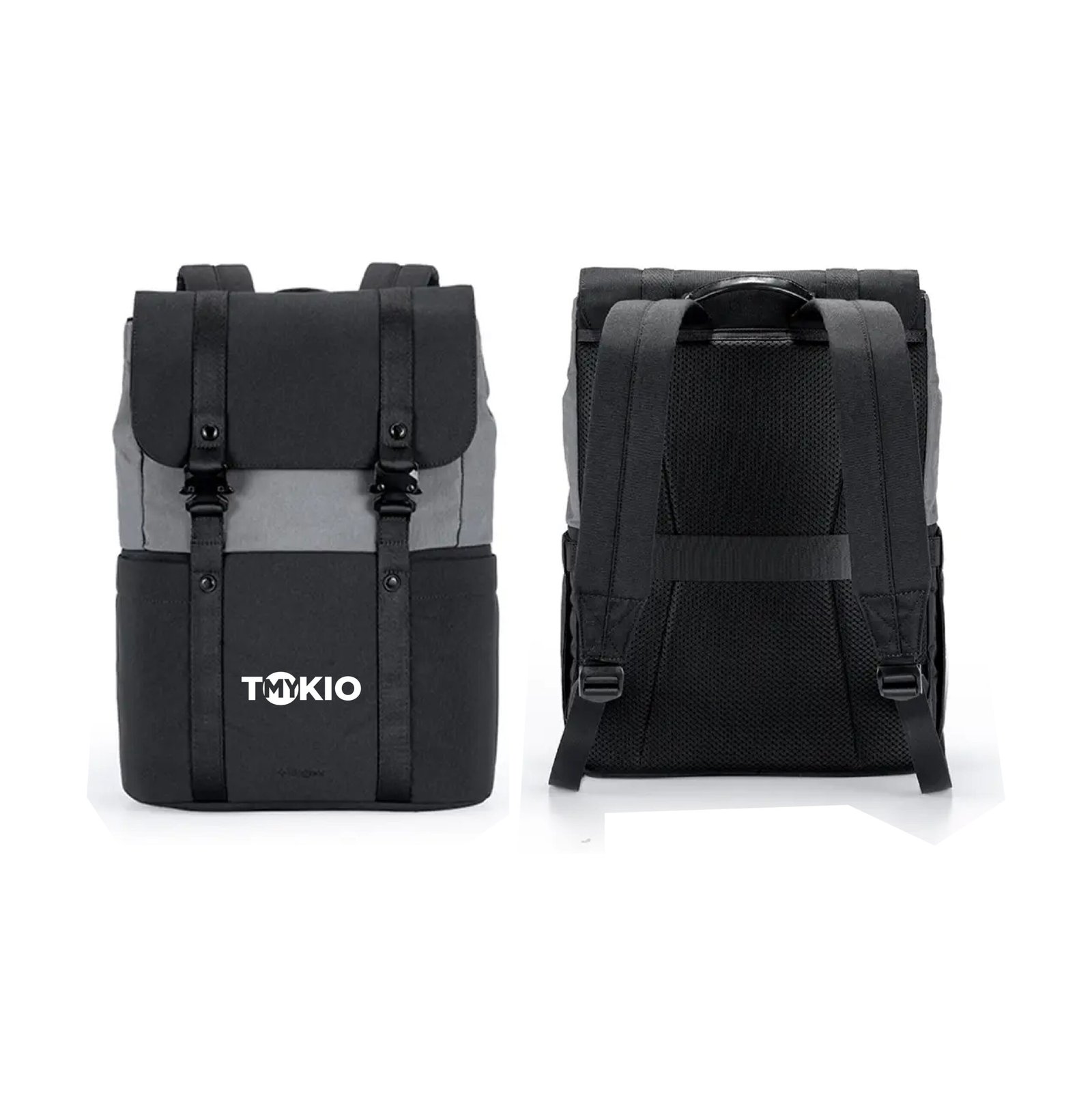 Mochila urbana hecha a base de poliéster reciclado 450D. Cuenta con un compartimento principal amplio, solapa con broches metálicos, correas ajustables y un diseño bicolor moderno. En su interior cuenta con un espacio para PC, otro para tablet, dos bolsillos pequeños sin cierre y dos para lapiceras. Incluye cinta para ser transportada junto con valija carry on. Ideal para llevar todo lo necesario al trabajo, universidad o salidas diarias con estilo y comodidad.