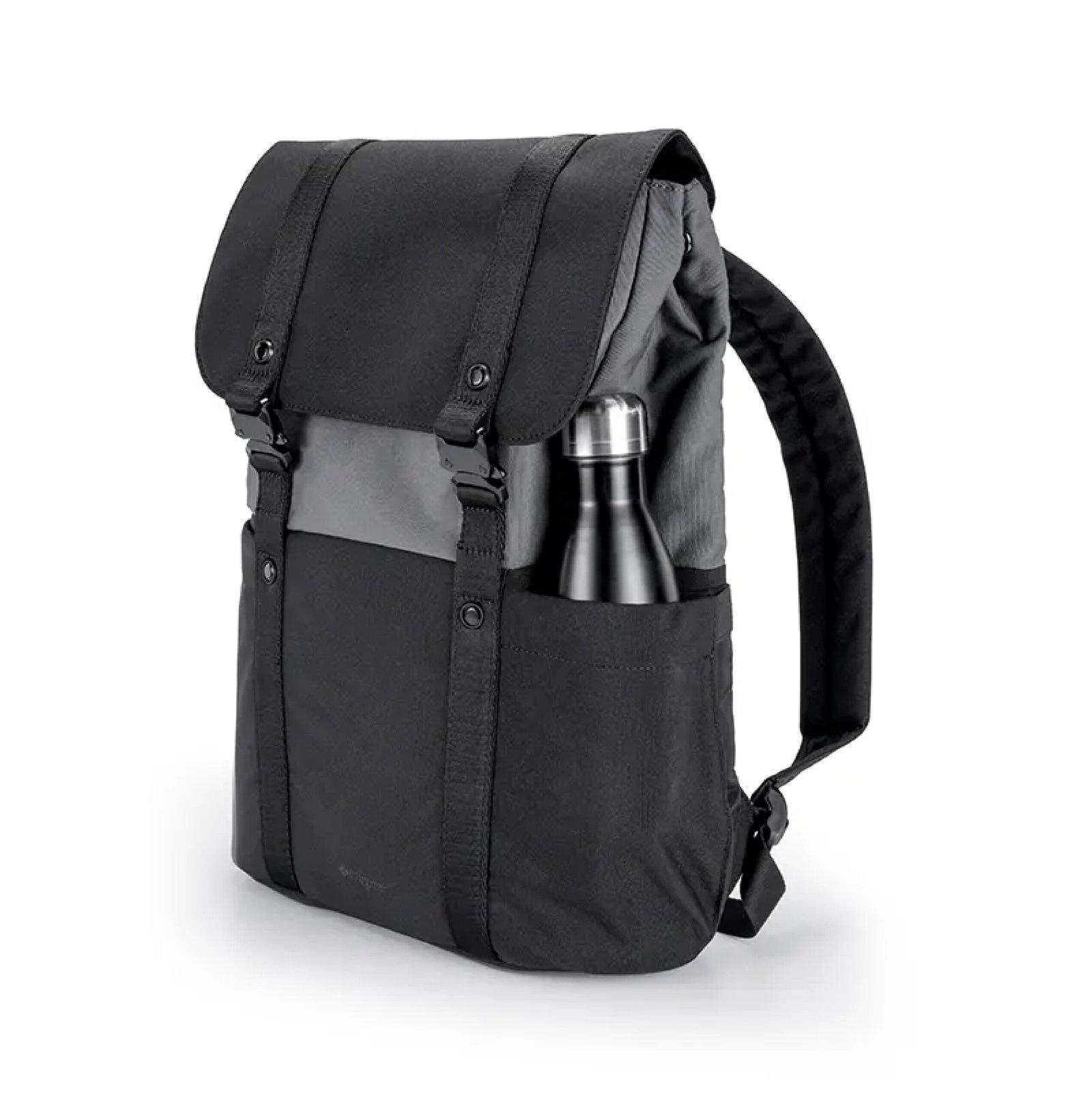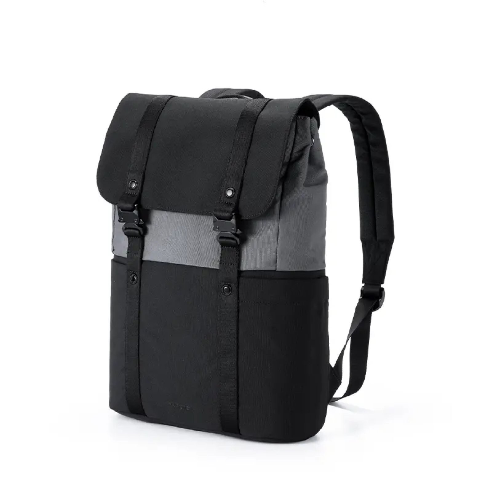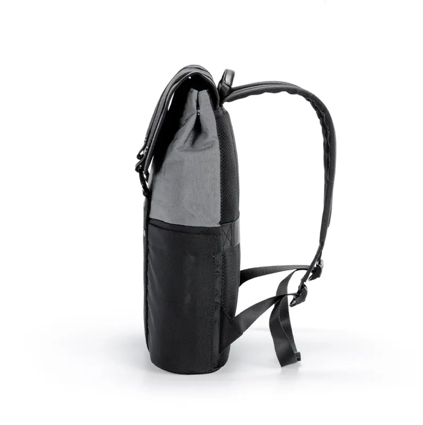 Mochila urbana hecha a base de poliéster reciclado 450D. Cuenta con un compartimento principal amplio, solapa con broches metálicos, correas ajustables y un diseño bicolor moderno. En su interior cuenta con un espacio para PC, otro para tablet, dos bolsillos pequeños sin cierre y dos para lapiceras. Incluye cinta para ser transportada junto con valija carry on. Ideal para llevar todo lo necesario al trabajo, universidad o salidas diarias con estilo y comodidad.