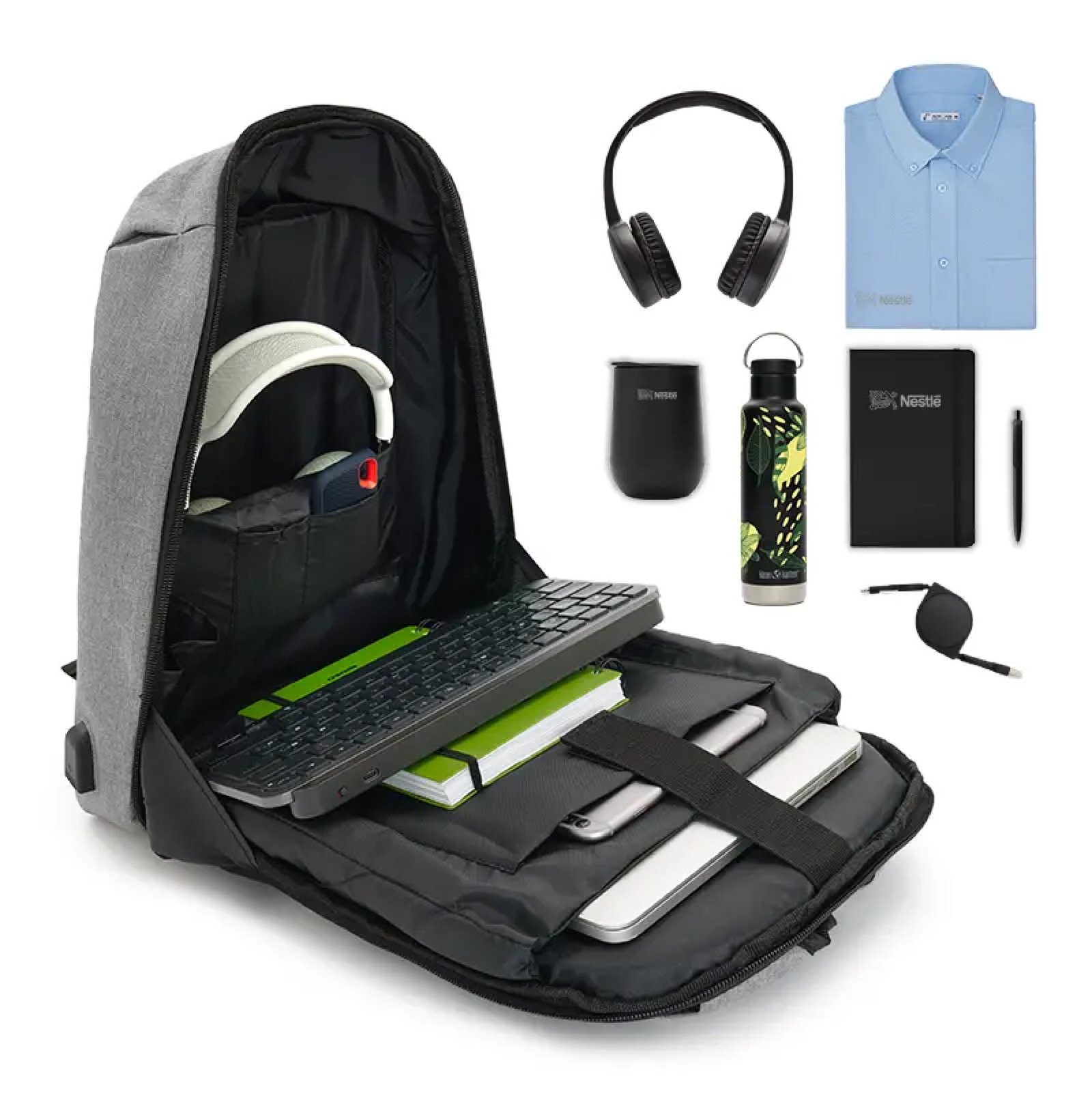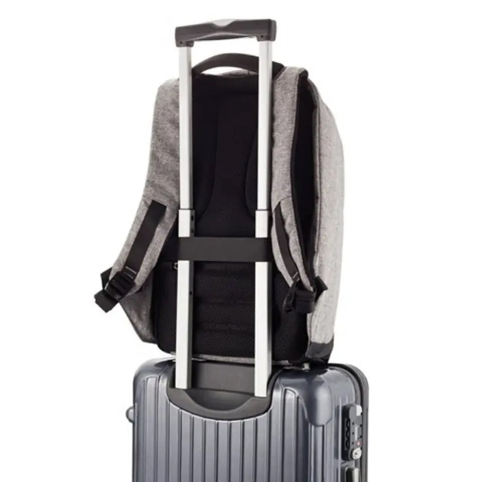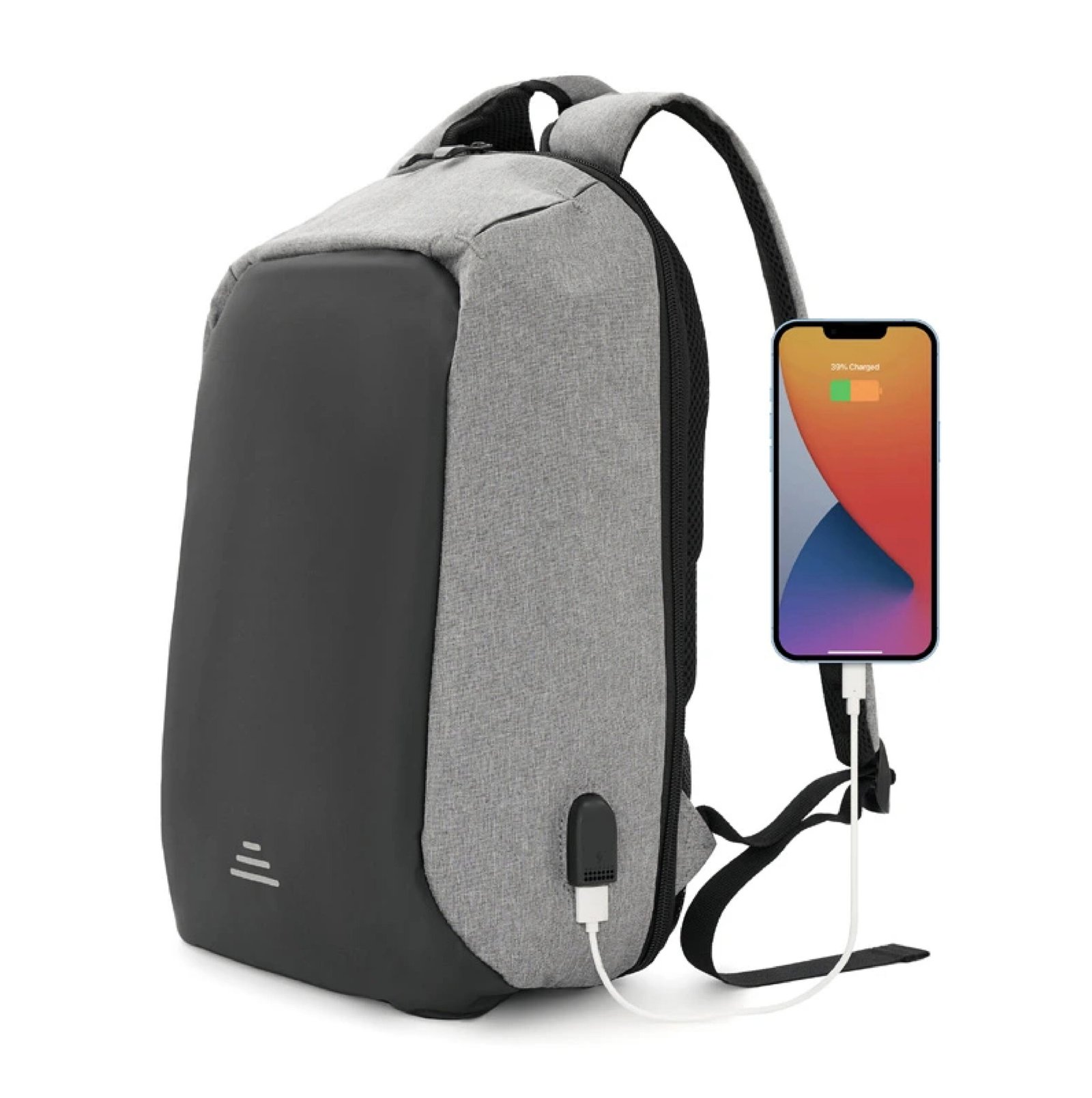 Mochila de Polyester Anti Robo con puerto USB. Compartimiento principal con gran capacidad Porta Tablet y Laptop. Bolsillo anti robo. Sujetador de carry on.Medidas: 44 x 32 x 15 cm. Capacidad: 21 Lts. Laptop: 15¨.