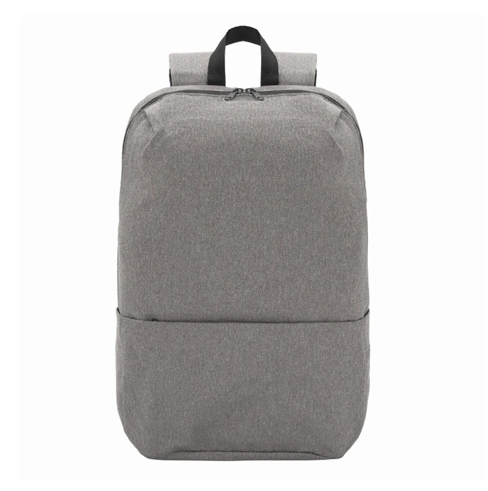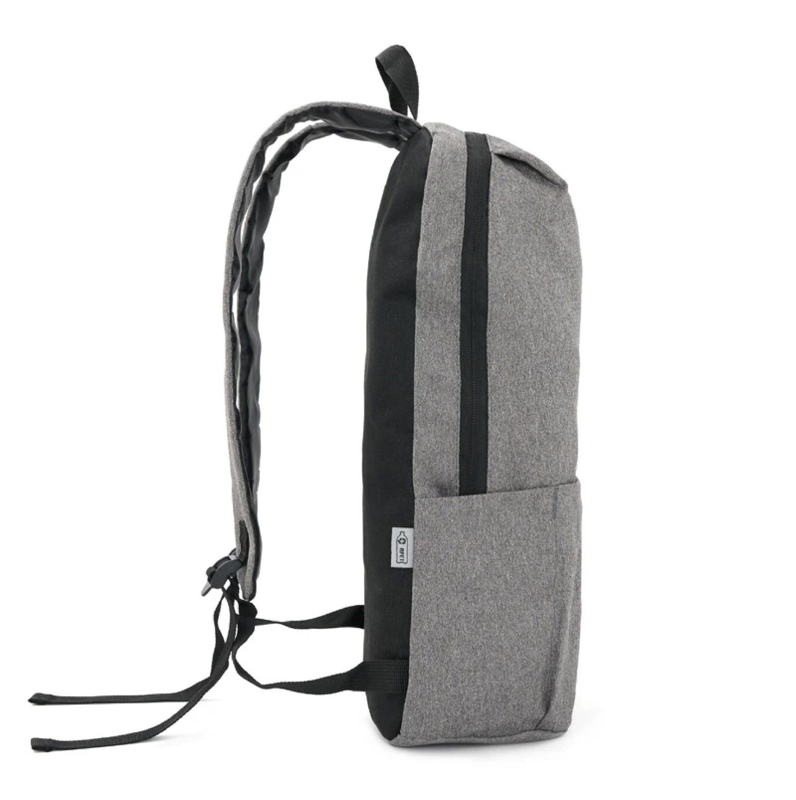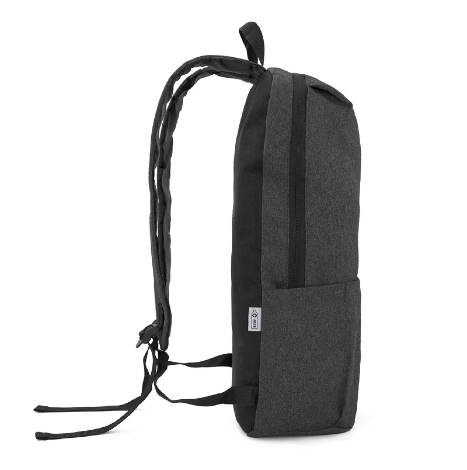 Mochila portanotebook de polyester sustentable RPET, confeccionada a partir de botellas recicladas. Cuenta con un bolsillo exterior tipo sobre. Medidas: 43,5 x 28,5 x 12 cm. Capacidad 14L. Notebook: 15,6″.