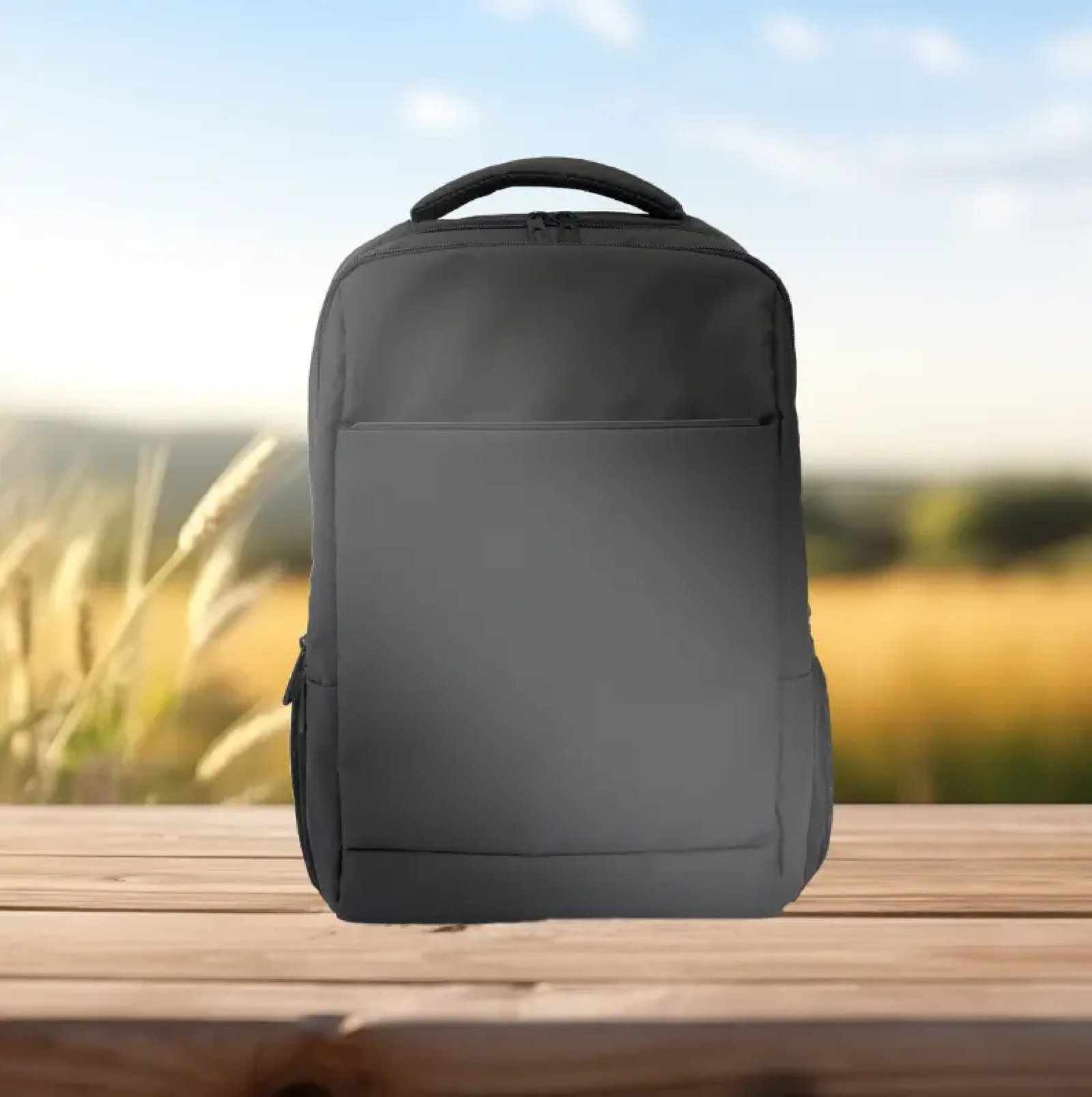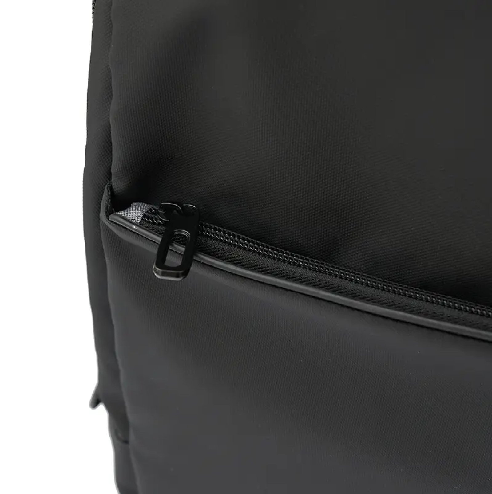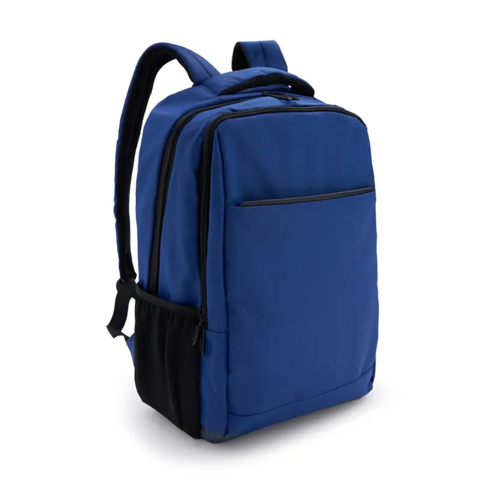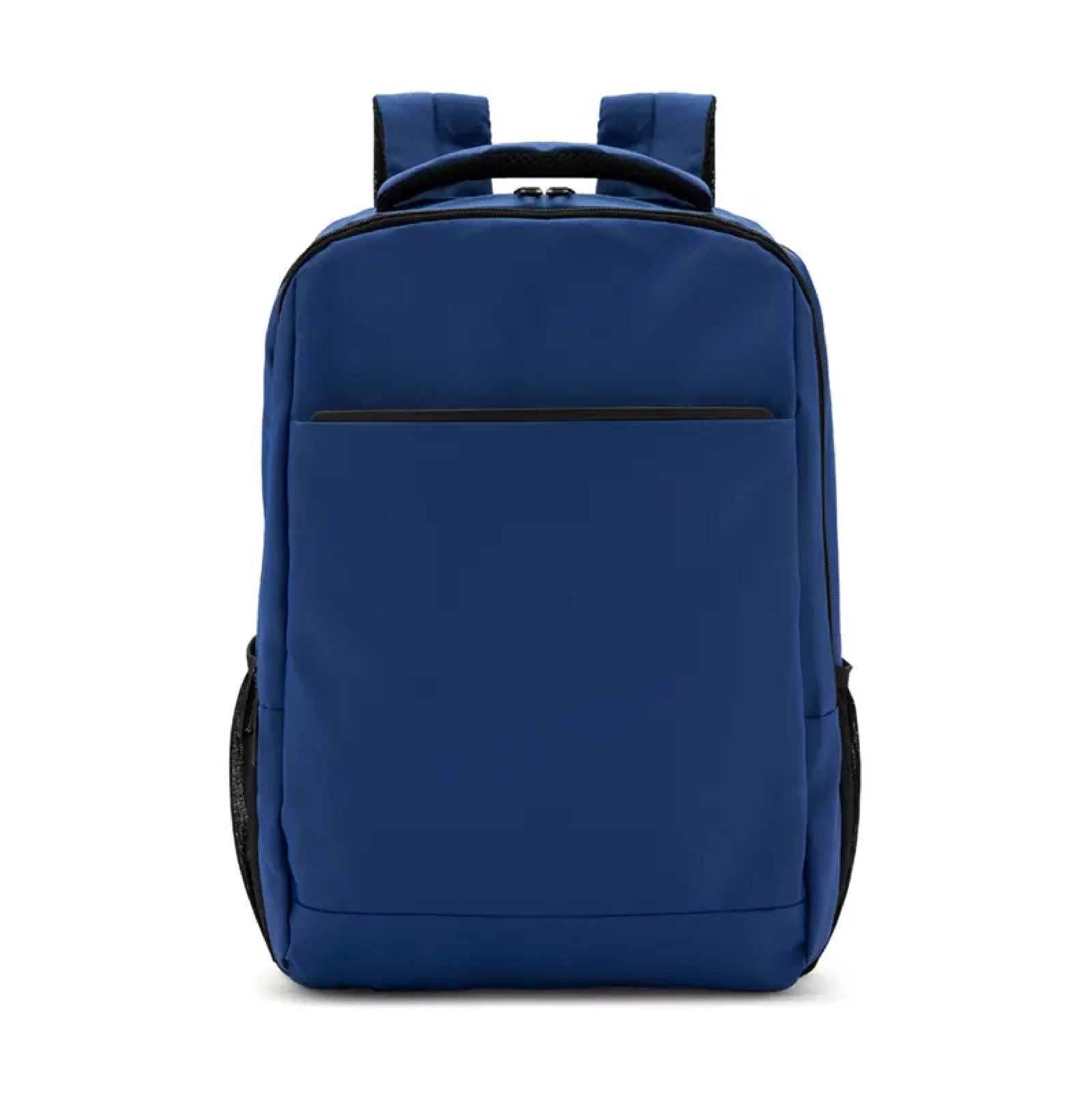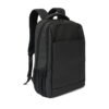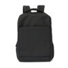 Mochila de color negro, fabricada con material PU en el exterior y espuma PE con forro completo. Dispone de un compartimento para computadora con correa elástica y velcro y otro amplio compartimento, un bolsillo frontal, dos bolsillos laterales de malla con elástico. Acomoda notebooks de hasta 15,6″. Además, cuenta con respaldo y correas acolchadas para mayor comodidad. Ideal para quienes necesitan una mochila funcional y organizada para el trabajo o estudios, con espacio suficiente para llevar una notebook y otros artículos esenciales. | Medidas: 44 x 30 x 11 cm.
