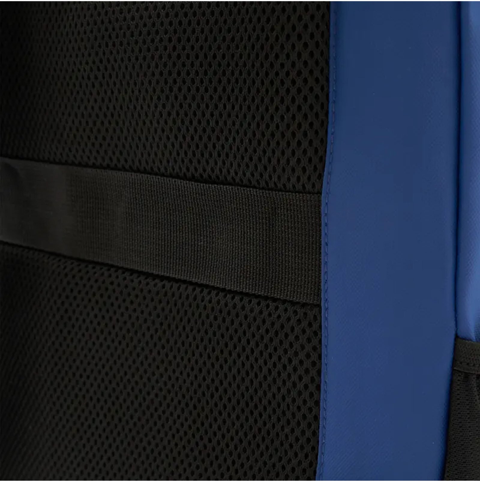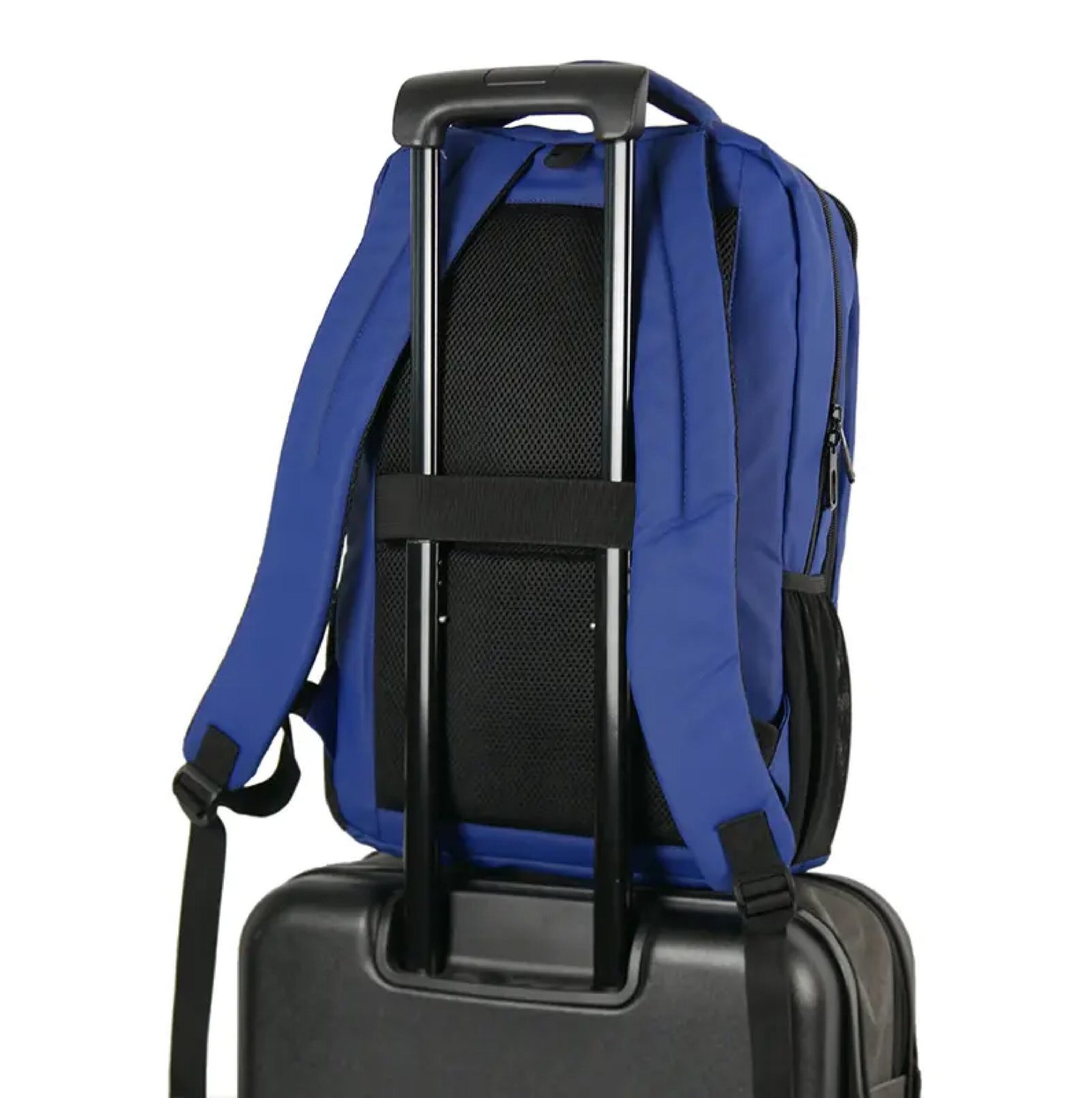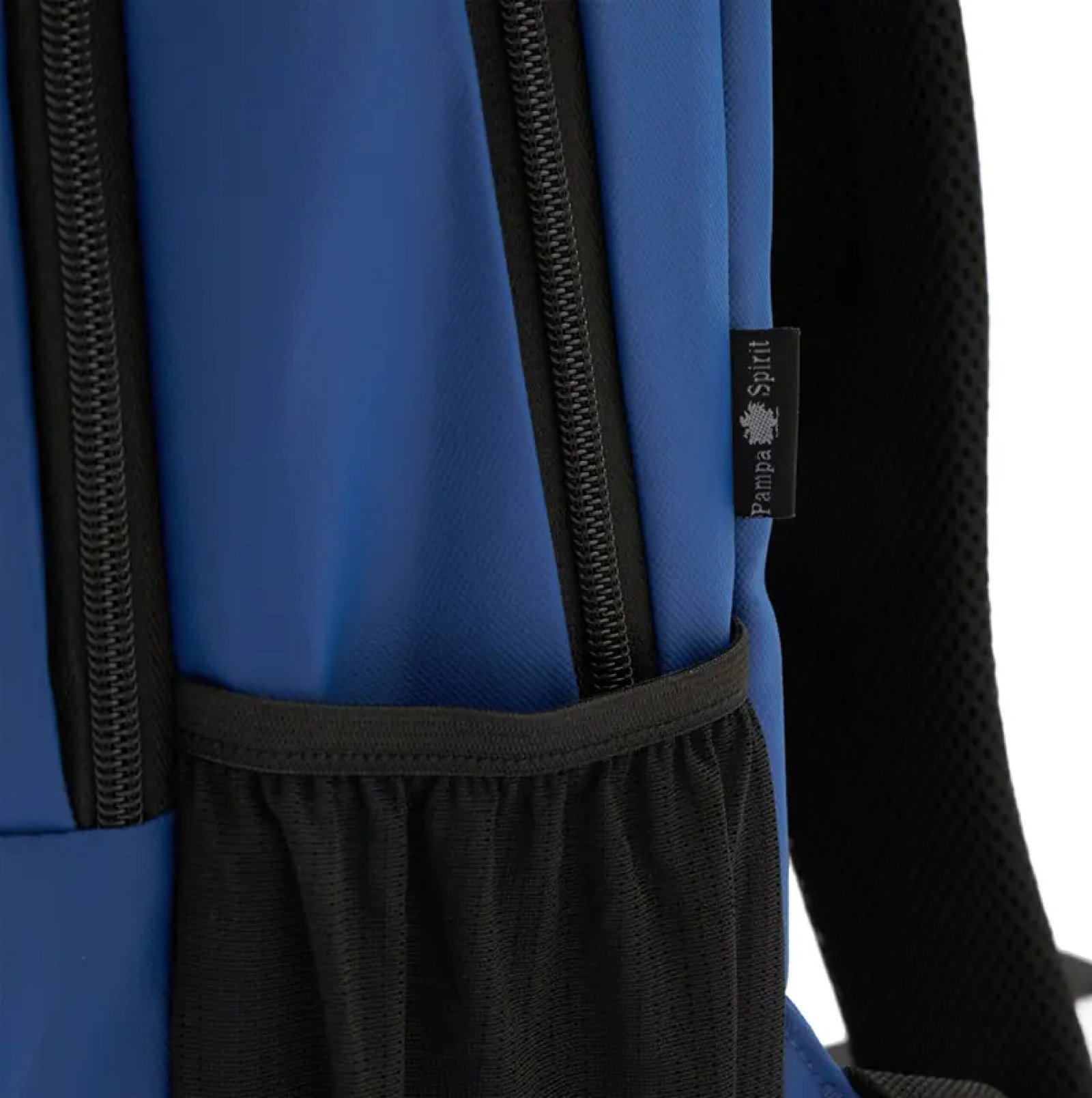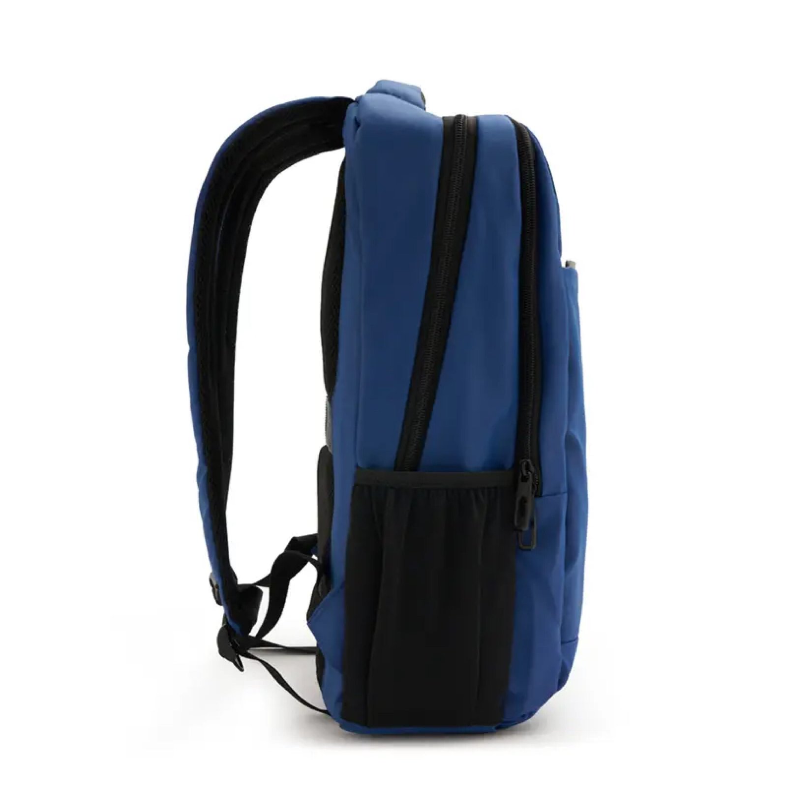 Mochila de color negro, fabricada con material PU en el exterior y espuma PE con forro completo. Dispone de un compartimento para computadora con correa elástica y velcro y otro amplio compartimento, un bolsillo frontal, dos bolsillos laterales de malla con elástico. Acomoda notebooks de hasta 15,6″. Además, cuenta con respaldo y correas acolchadas para mayor comodidad. Ideal para quienes necesitan una mochila funcional y organizada para el trabajo o estudios, con espacio suficiente para llevar una notebook y otros artículos esenciales. | Medidas: 44 x 30 x 11 cm.