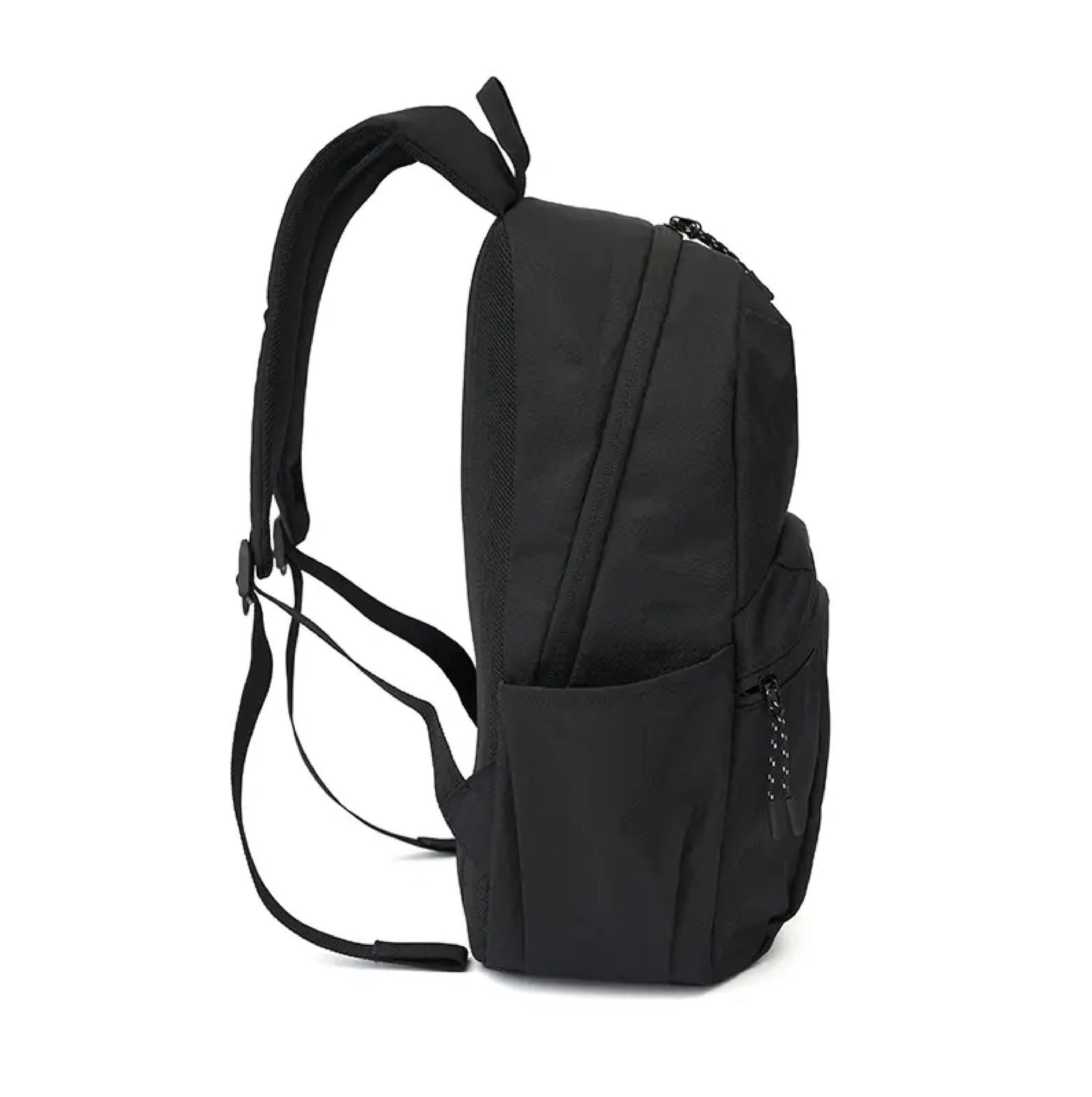 Mochila en color negro, fabricada en 100% nylon gucci con forro completo. Incluye un bolsillo interno, un bolsillo frontal y dos bolsillos laterales en el mismo material que la mochila. | Ideal para quienes necesitan una mochila resistente y versátil para el día a día o para actividades al aire libre. | El producto viene en una bolsa de material 100% PLA, biodegradable y compostable.