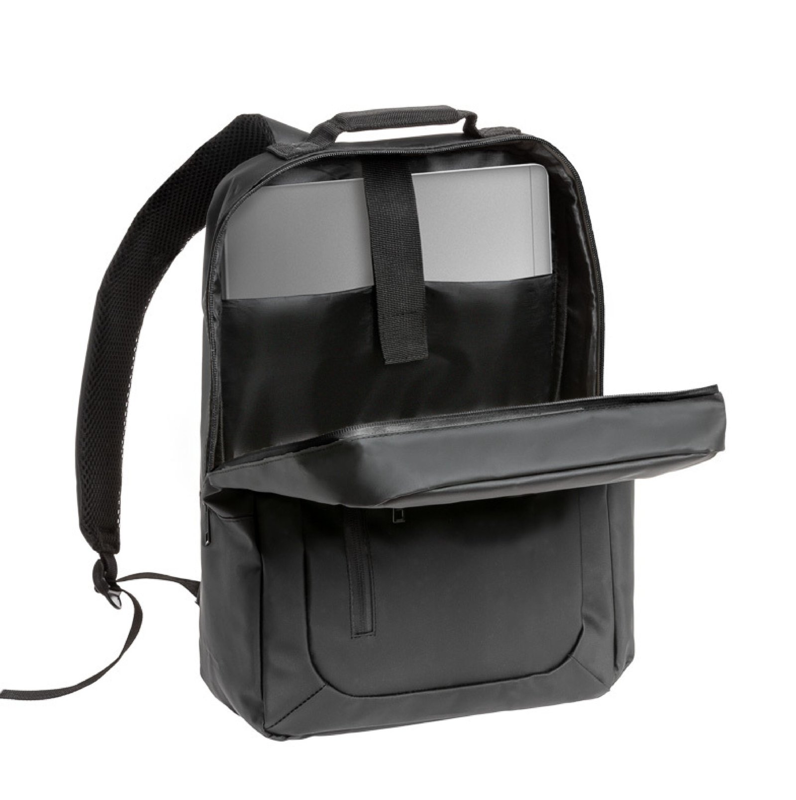 Mochila impermeable fabricada en poliéster 600D con cierres impermeables. Compartimiento principal acolchado para notebook de hasta 15,6″, con bolsillo lateral y bolsillo frontal. Espalda y tirantes acolchados. Capacidad: 11L. | Medidas: 30 x 10 x 40 cm
