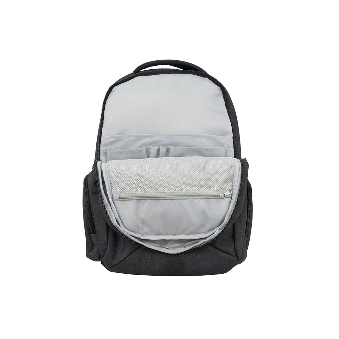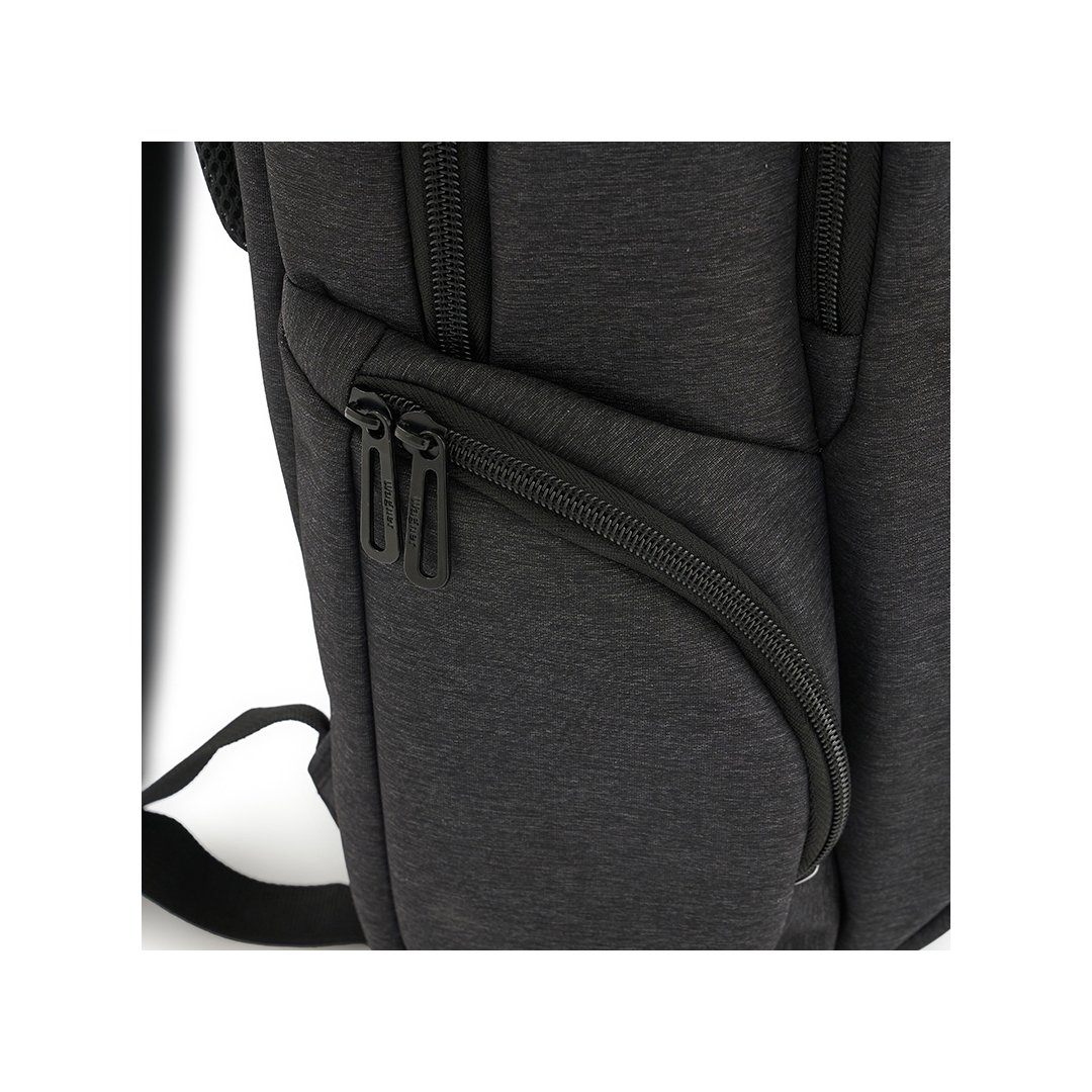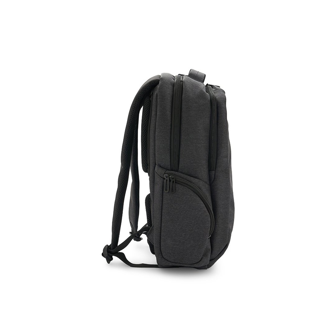 Mochila realizada en Poliester, con respaldo y correas acolchadas. Tiene dos bolsillos principales, un espacio completamente acolchado para notebook, 2 bolsillos laterales y bolsillos internos. Dimensiones: 44 x 31 x 13 cm. Capacidad: 17Lts. Notebook: 15,6″.