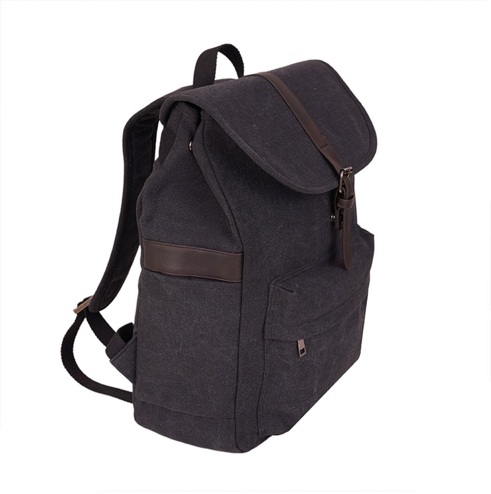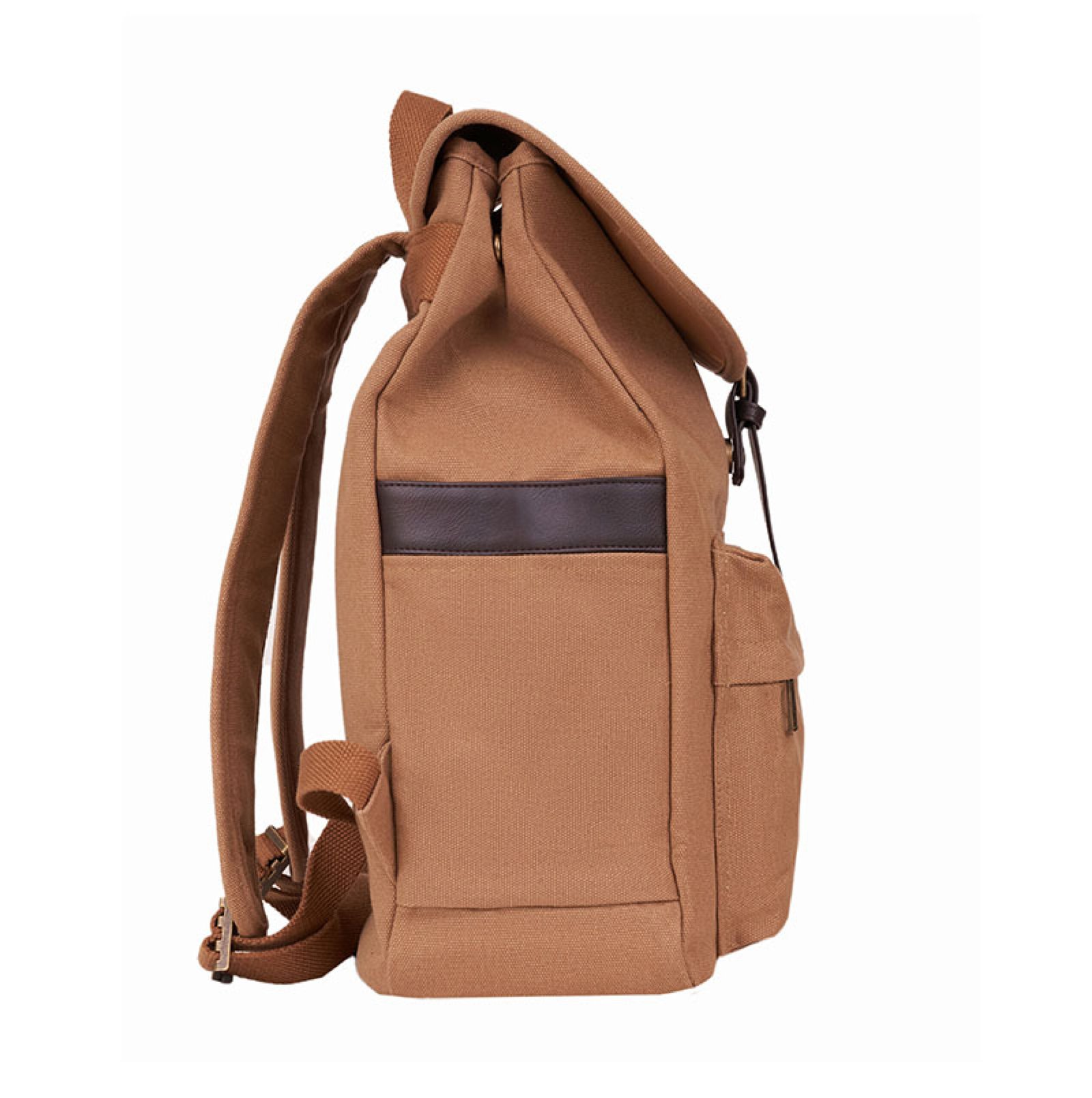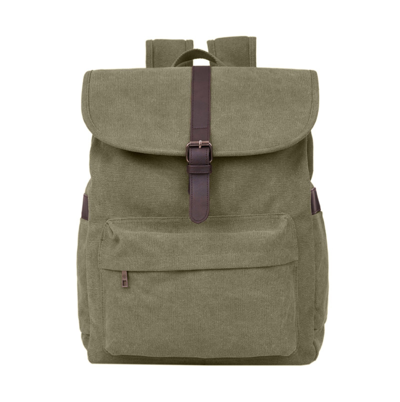 Es una mochila realizada en tela de canvas, con detalles en PU. Cuenta con un compartimiento principal con cierre hebilla y una división acolchada portaNotebook de 15″. Además, posee un bolsillo frontal para llevar pequeños objetos y correas ajustables y un bolsillo lateral abierto para llevar tu bebida. Medidas: 32cm ancho x 48cm alto x 12cm profundidad. Capacidad: 18L.