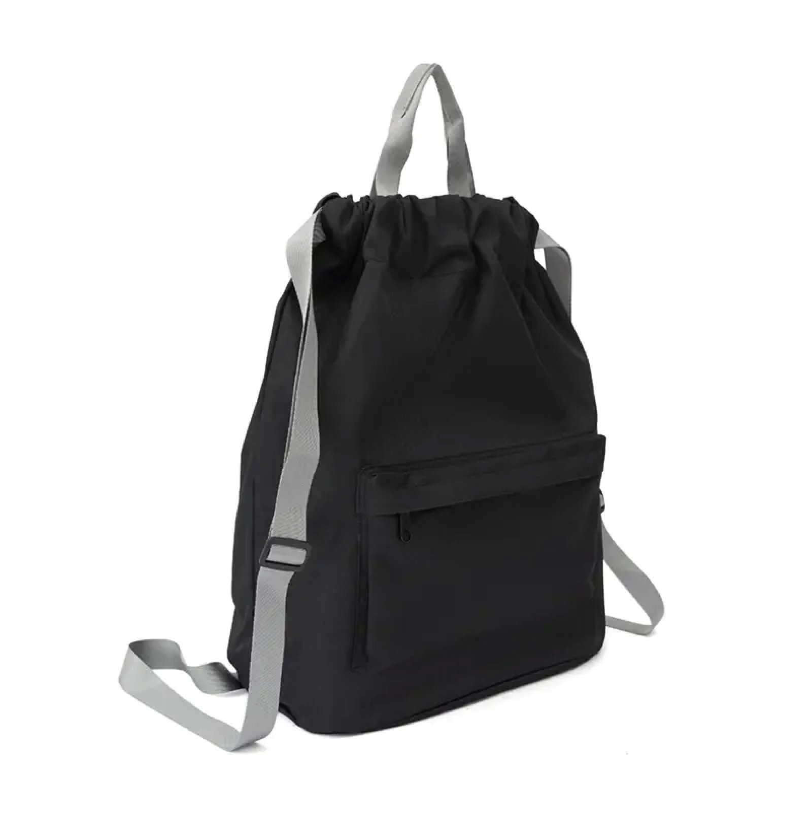 Mochila confeccionada en 100% poliéster 600D PU, lo que garantiza resistencia y durabilidad. Su amplio compartimento principal se cierra con las correas de hombro, ofreciendo un diseño práctico y ligero. Ideal para quienes buscan una mochila funcional tanto para el día a día como para actividades deportivas. Incluye un bolsillo frontal con cierre para acceso rápido a tus pertenencias y un pequeño bolsillo interior con velcro para una mayor organización. Cuenta con dos correas cortas para llevarla de la mano y espacio para notebooks de hasta 15,6″, es perfecta para transportar tus objetos esenciales con comodidad y seguridad.