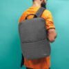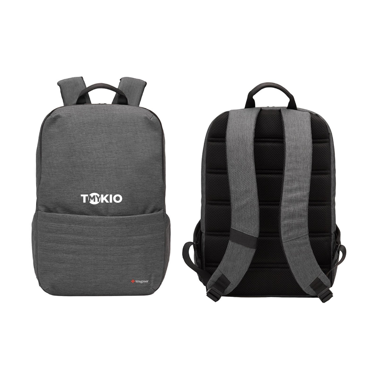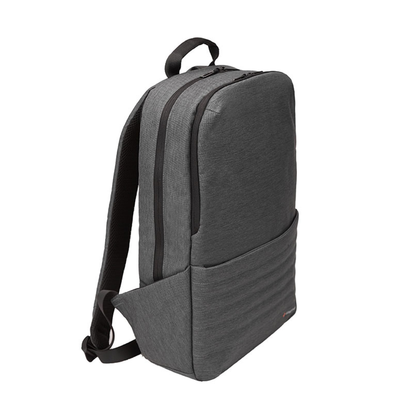 Mochila realizada en Poliester, con respaldo y correas acolchadas. Cuenta con dos compartimentos principales con cierre, uno de ellos completamente acolchado para notebook. Bolsillo secundario en el frente y dos bolsillos laterales para pequeños objetos. Dimensiones: 43 x 29 x 9.5 cm. Capacidad: 11 Lts. Notebook: 15,6″
