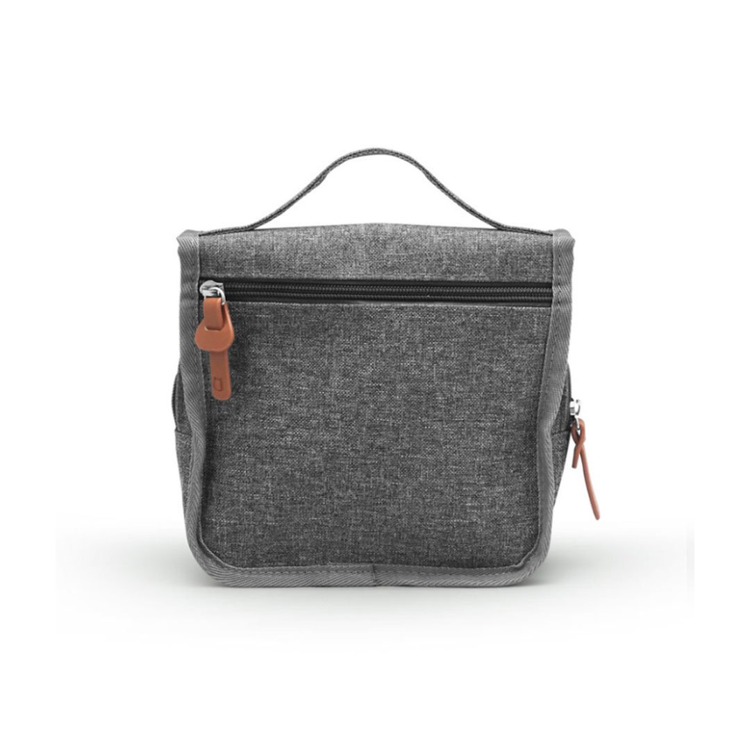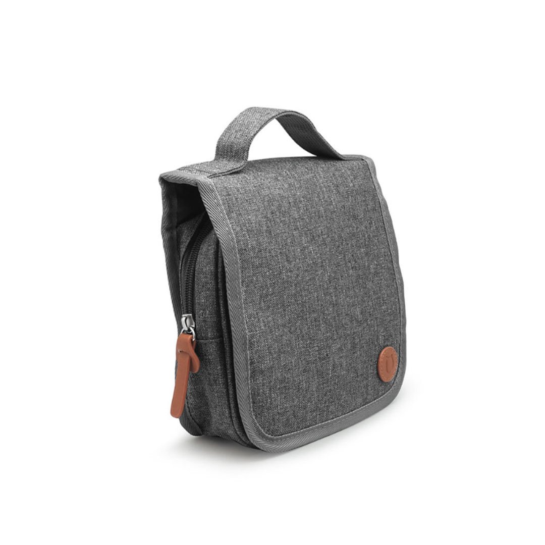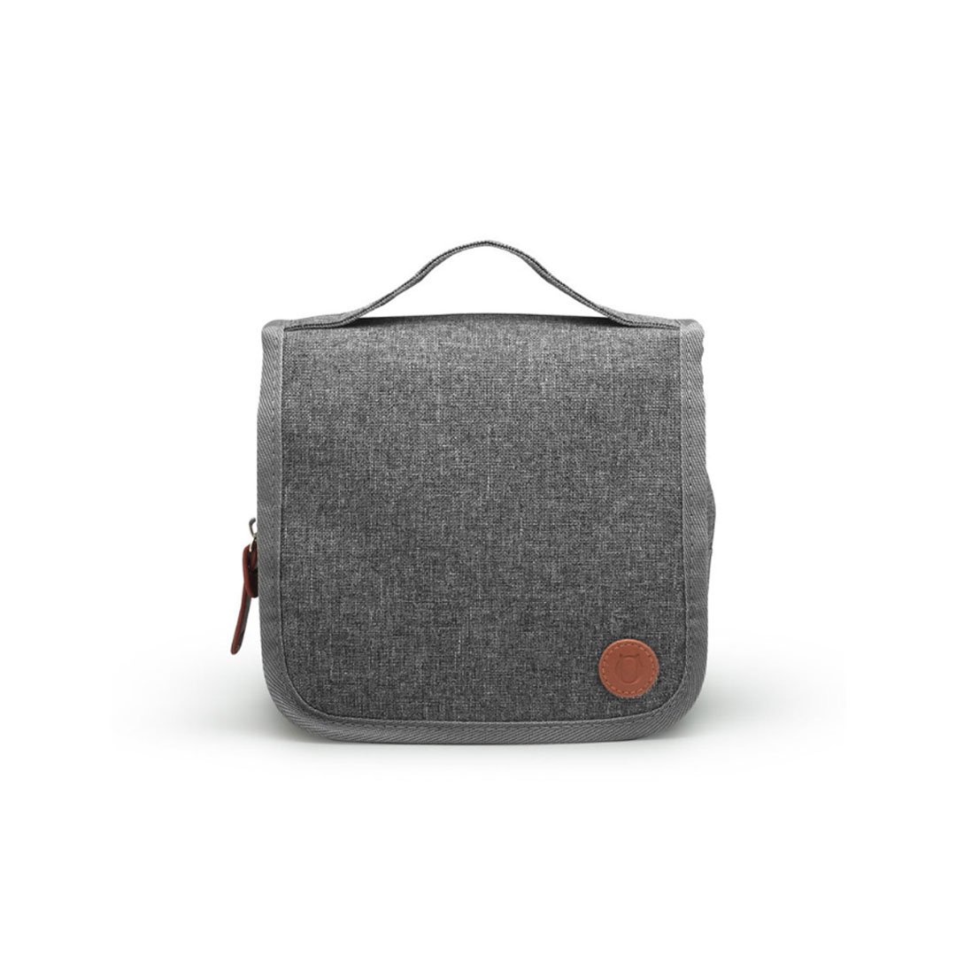 Neceser colgante. Estuche multiuso de tela con sistema de colgado, compartimentos individuales con cierre en su interior, bolsillo externo y correa de agarre.