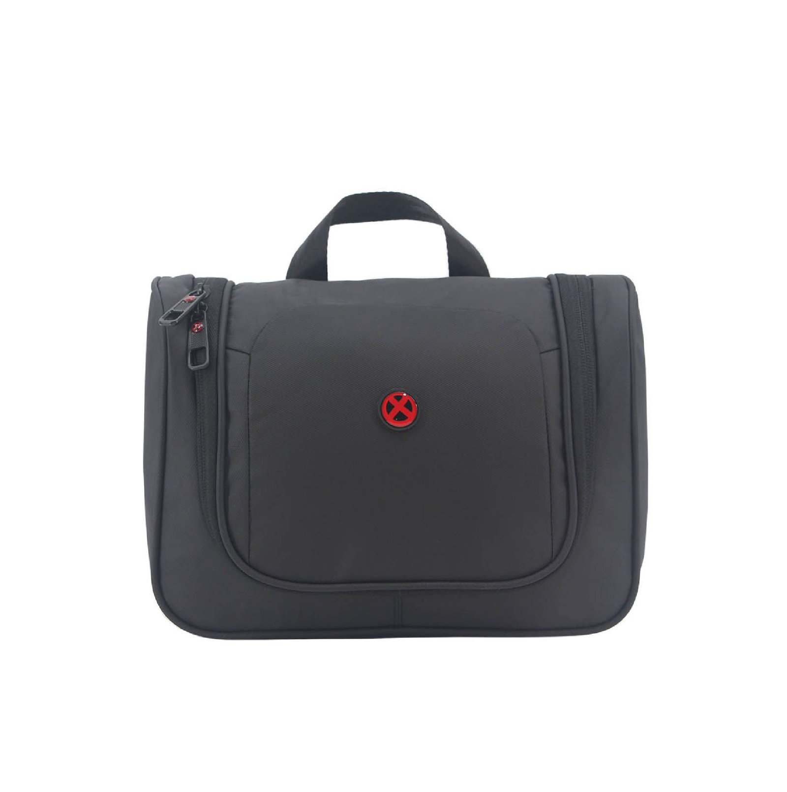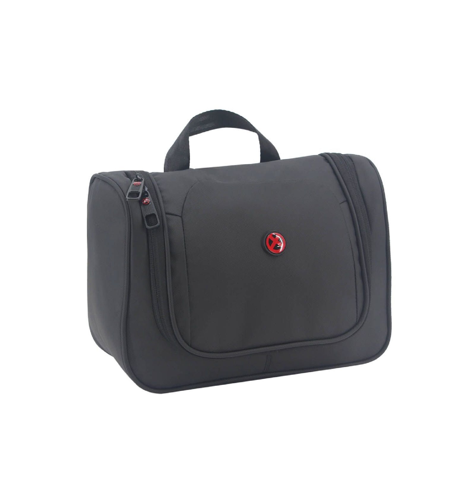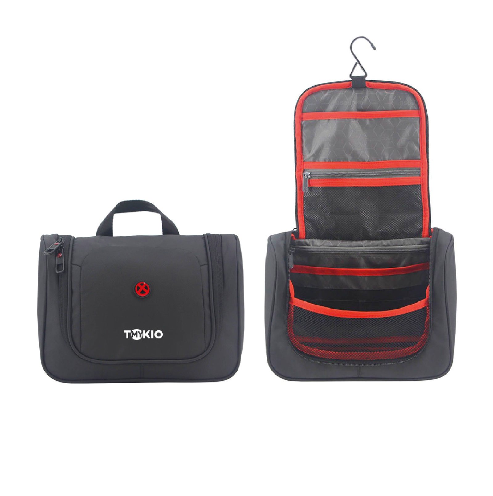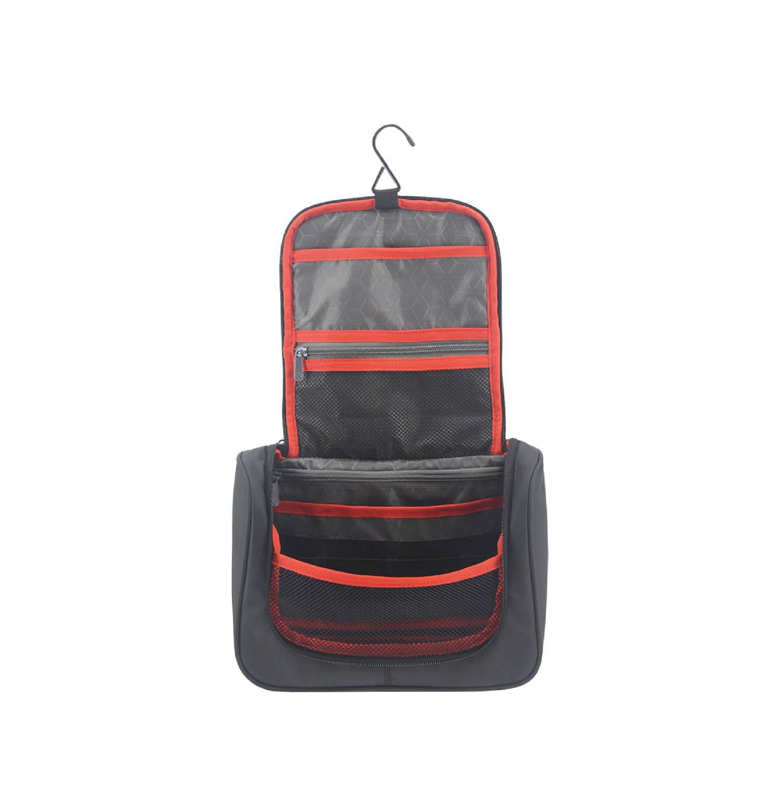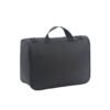 Neceser con varios compartimentos interno, ideal para organizar tus artículos| Material: Polyester | Compartimiento principal amplio con cierre | Su interior se encuentra acolchado y presenta: dos bolsillos de tela red con cierre, sujetadores elásticos y un gancho para colgar el neceser en forma desplegada | Asa superior de agarre | Medidas: 27 cm. de largo, 20 cm. de alto y 11 cm. de profundidad | Color disponible: Negro.