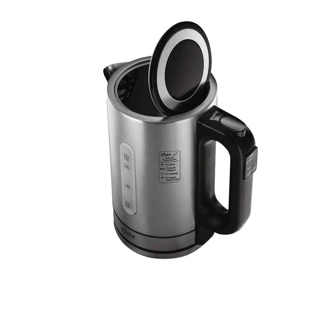 Pava eléctrica digital 1,7L Pava eléctrica inalámbrica de 360° que puede colocarse en la base desde cualquier ángulo para mayor comodidad. Con gran capacidad: hasta 1,7 litros de agua, y con panel de control fácil de usar con ajustes de temperatura ideal según el tipo de infusión elegida. Función para mantener caliente por 30 minutos. Apagado automático de seguridad con protección que impide que hierva hasta secarse. La resistencia oculta ayuda a evitar la acumulación de residuos calcáreos y facilita la limpieza. Ventana de agua iluminada durante el funcionamiento. El surtidor de vertido fácil con filtro de agua de malla fina removible ayuda a prevenir la acumulación de residuos calcáreos Cuenta con área práctica para almacenar el cable que permite enrollar el cable sobrante bajo la base desmontable