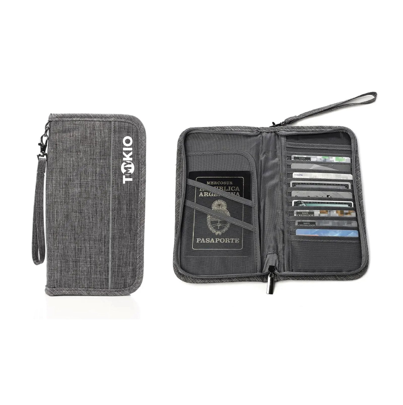 Interior: Bolsillo con y sin cierre, porta tarjetas múltiples.