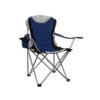 Silla en Polyester plegable tipo director con apoyabrazos, portavaso de red y bolsillo trasero. Posee una estructura metálica reforzada y protección antideslizante. Incluye: bolsa con manija para transporte. Medidas: 87 x 60 cm. Altura: 42 cm. (desde el piso al asiento) Medidas de Asiento: 45 x 52 cm.