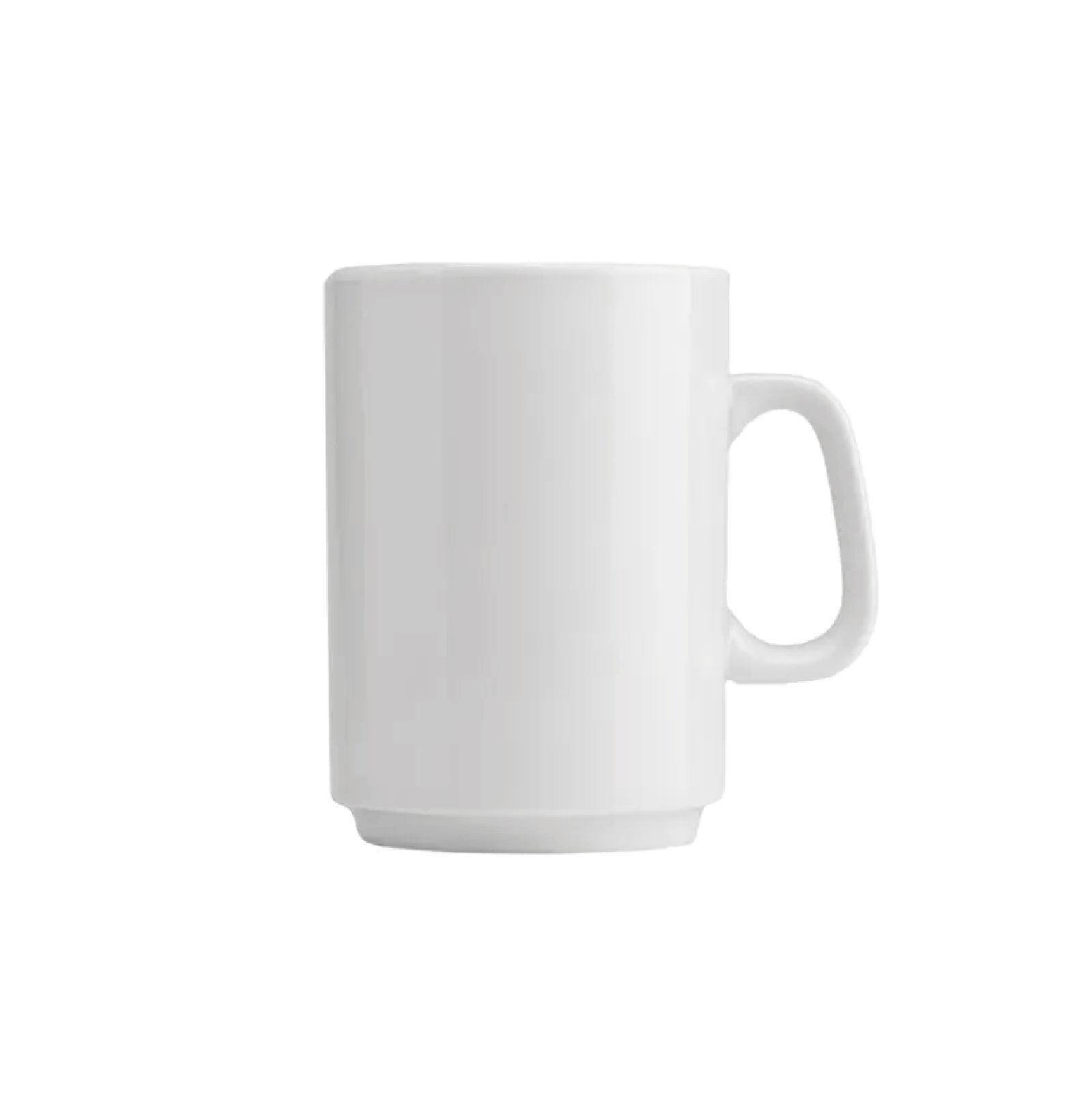Taza de Porcelana recta con asa. Resiste altas temperaturas.