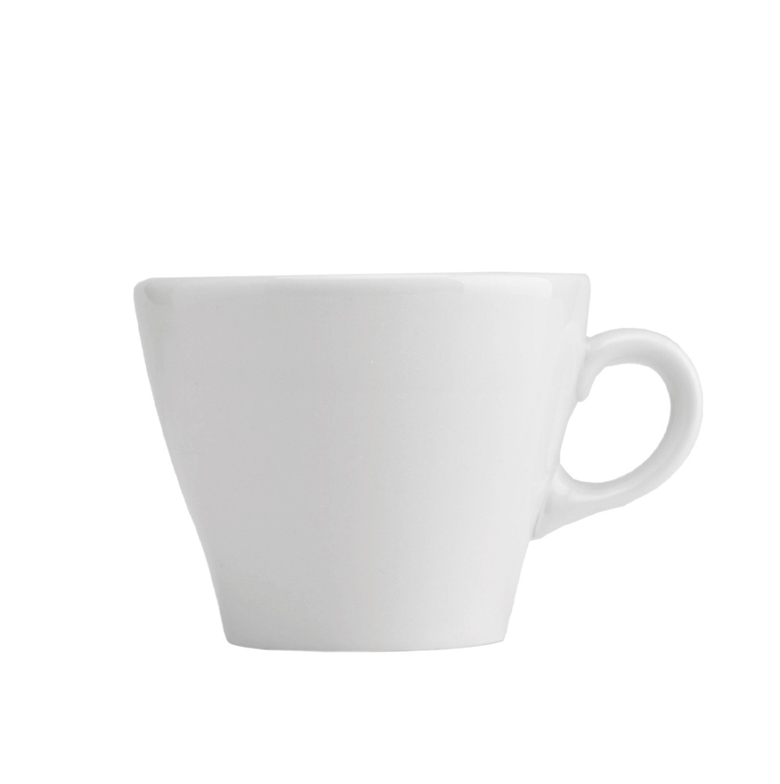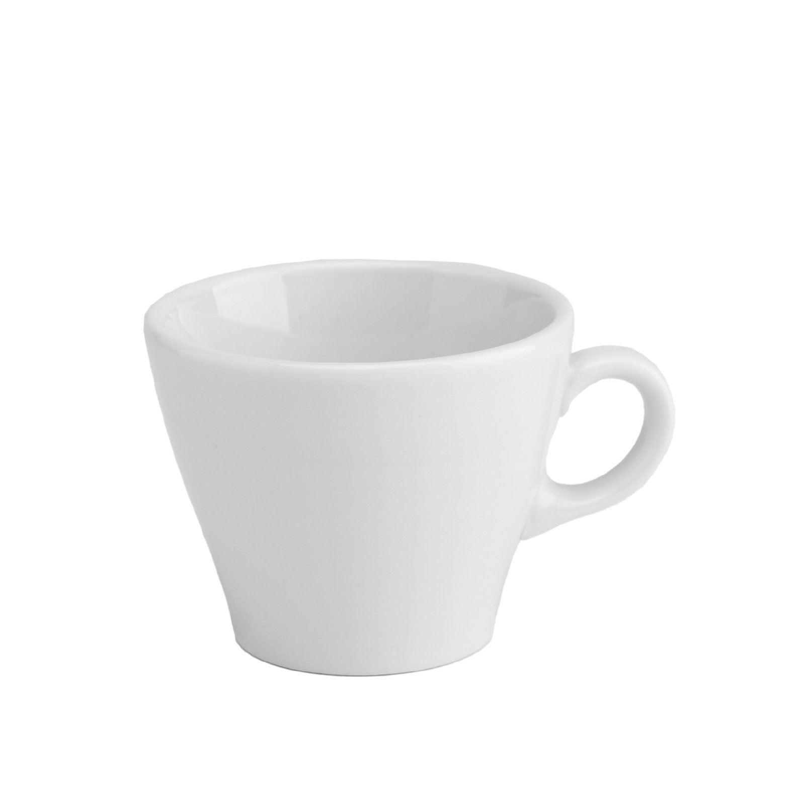 Taza de porcelana con asa. Resiste altas temperaturas.