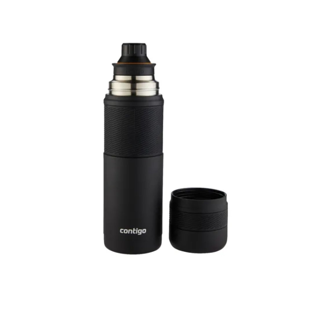 Termo de Acero Inoxidable Contigo con pico matero 360. Mantiene las bebidas hasta 35 horas calientes o 60 horas frías, a prueba de derrames. Tiene una amplia boquilla para servir a 360° que le brinda un rápido flujo de líquidos desde cualquier lado. La tapa aislada también funciona como taza. – Grip de silicona antideslizante para un manejo seguro y confortable. – 100% de acero inoxidable – Facil limpieza, resiste a los olores. Pico de alta resistencia.
