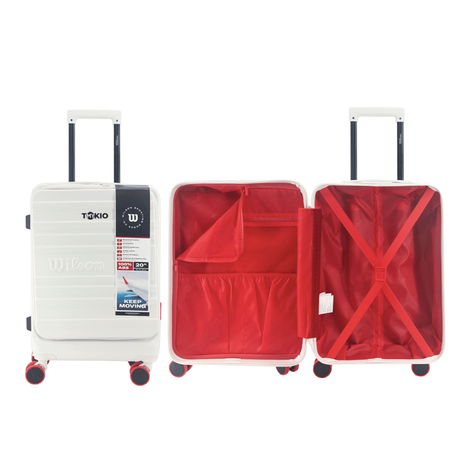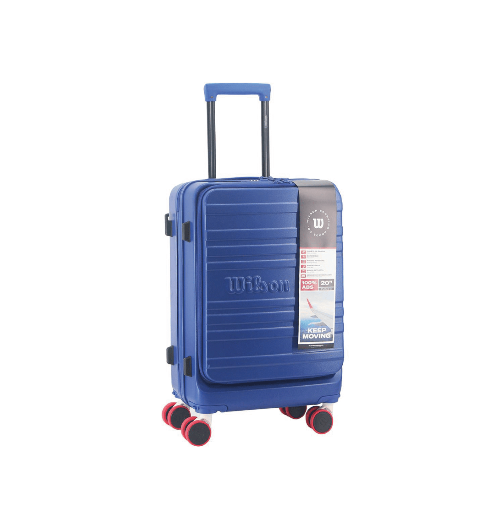 Valija rígida Wilson 20” con compartimento frontal para notebook, ideal para viajes de cabina y escapadas cortas. Fabricada en ABS resistente, combina durabilidad y diseño funcional. Cuenta con 4 ruedas giratorias 360° y manija retráctil para un traslado cómodo.