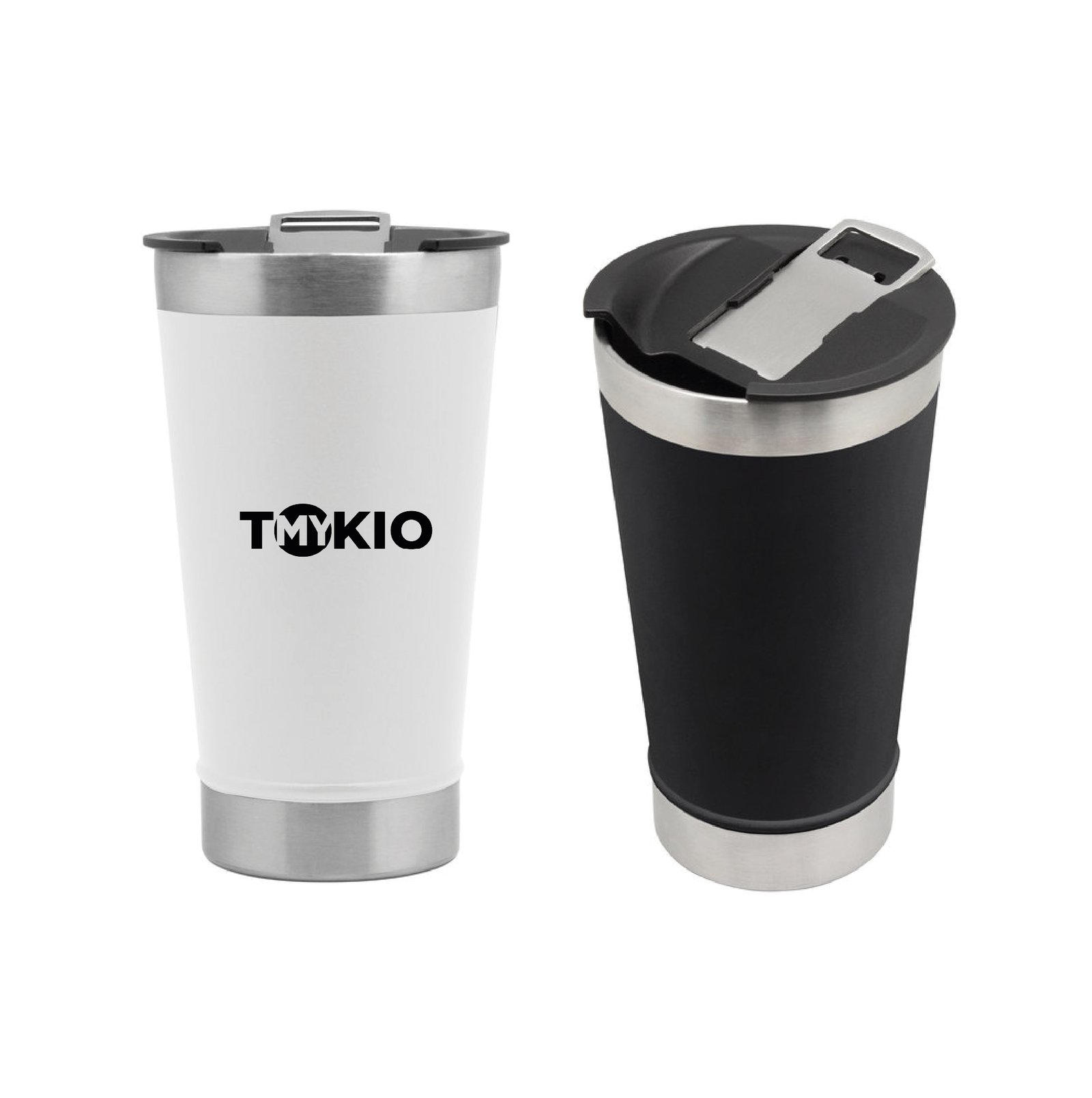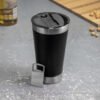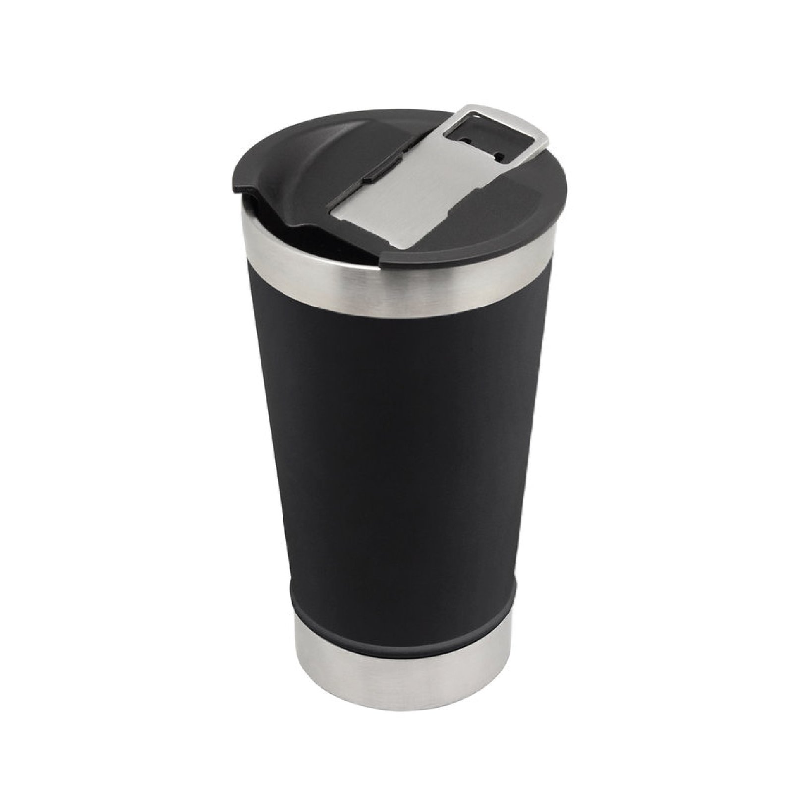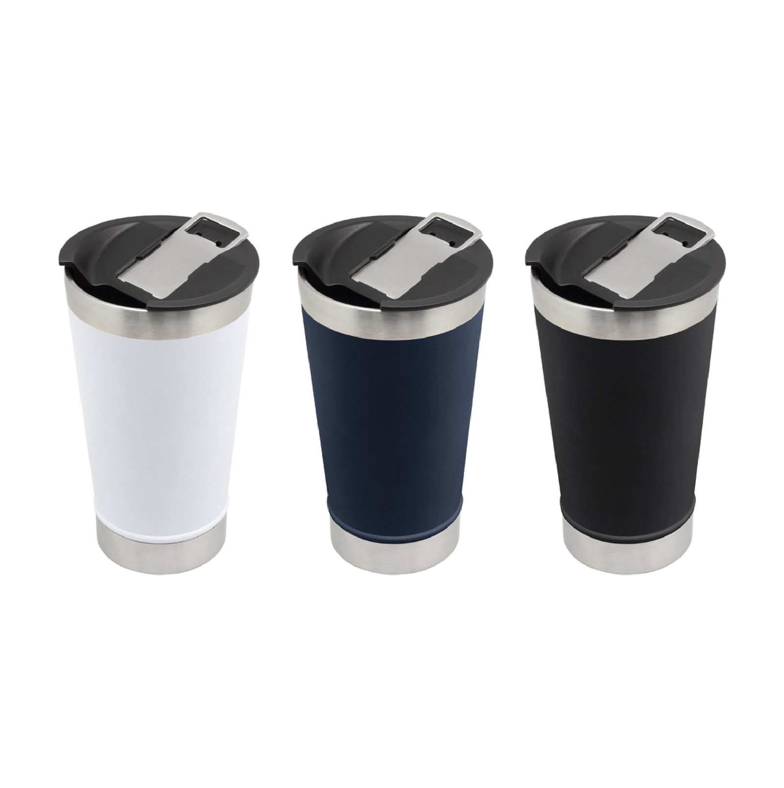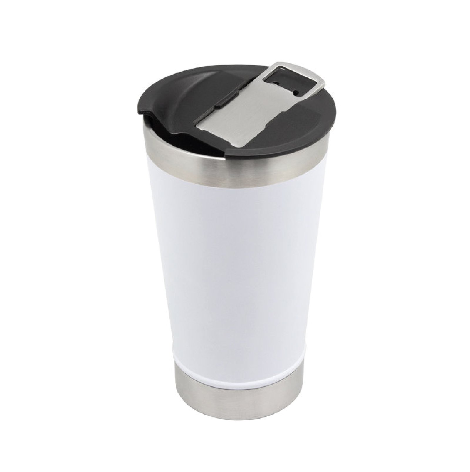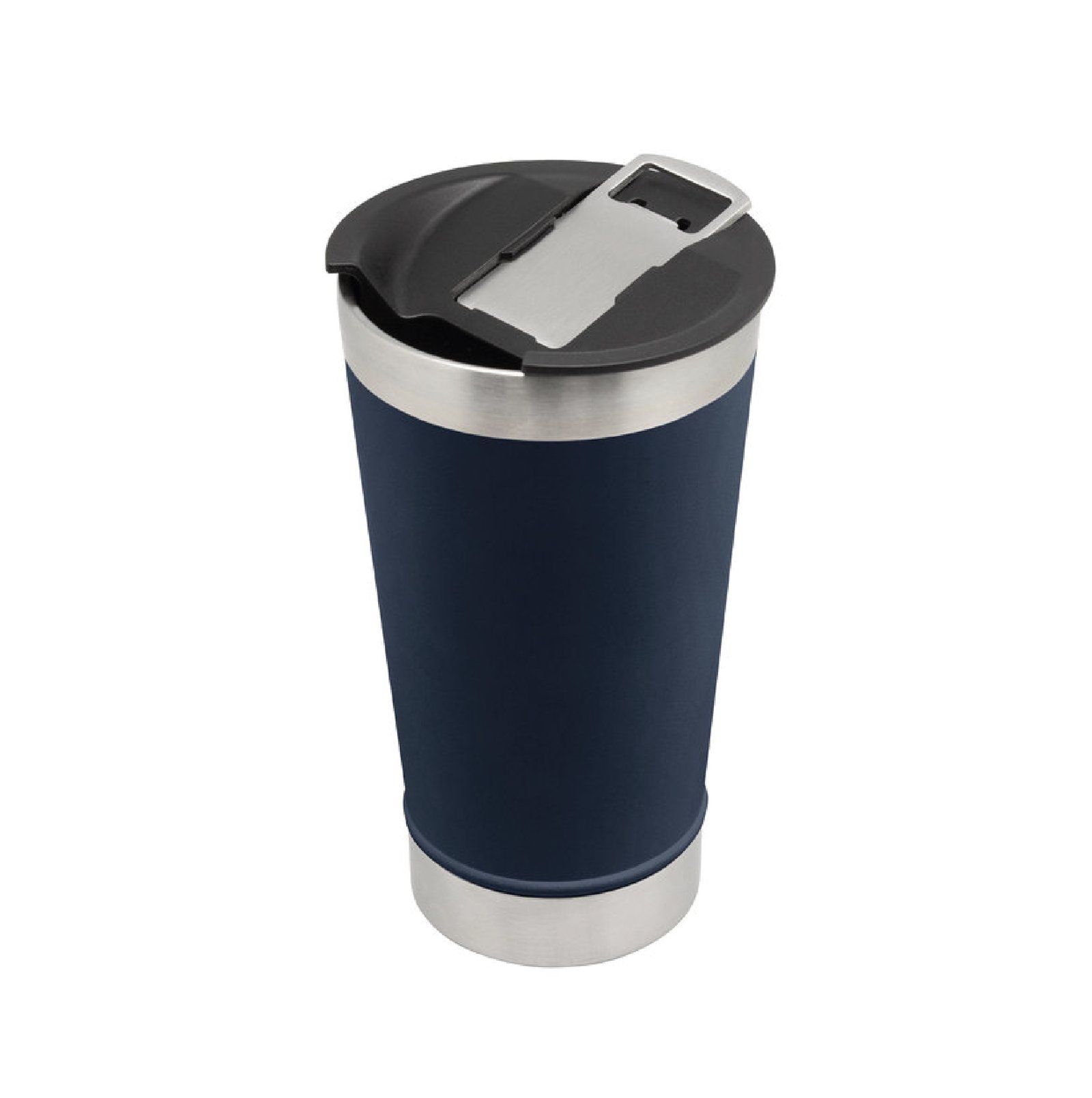 Disfruta de tus bebidas frías o calientes con estilo. Mug doble pared, sellado al vacío. Interior en acero 304 y exterior en acero 201. Tapa plástica con boca ancha a presión con anillo de silicona. incluye abridor de botellas en acero inoxidable 430. Pintura exterior con acabado mate. Mantiene hasta 2 hs la temperatura de las bebidas calientes y 4 hs de las bebidas frías.  Medidas: Ø 7,5 x 17 cm. Capacidad: 500 ml. Materiales: Acero inoxidable + Polipropileno.